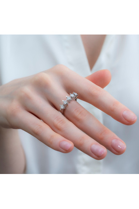 anadolusilver 925 Ayar Gümüş Taşlı Baget Yüzük - Altın Kaplama Baget Yüzük - Kadın Gümüş Yüzük