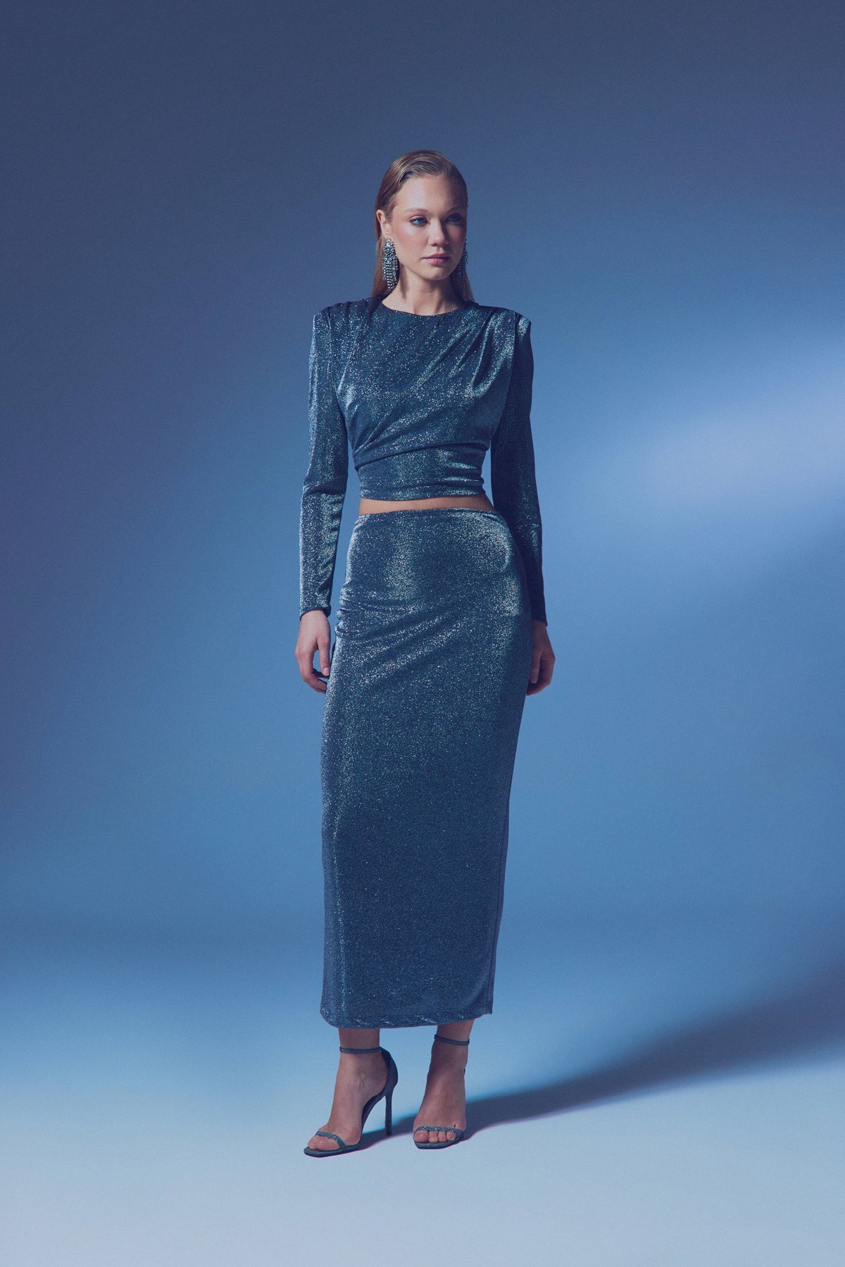 Sateen Simli Midi Etek - Antrasit Özellikleri