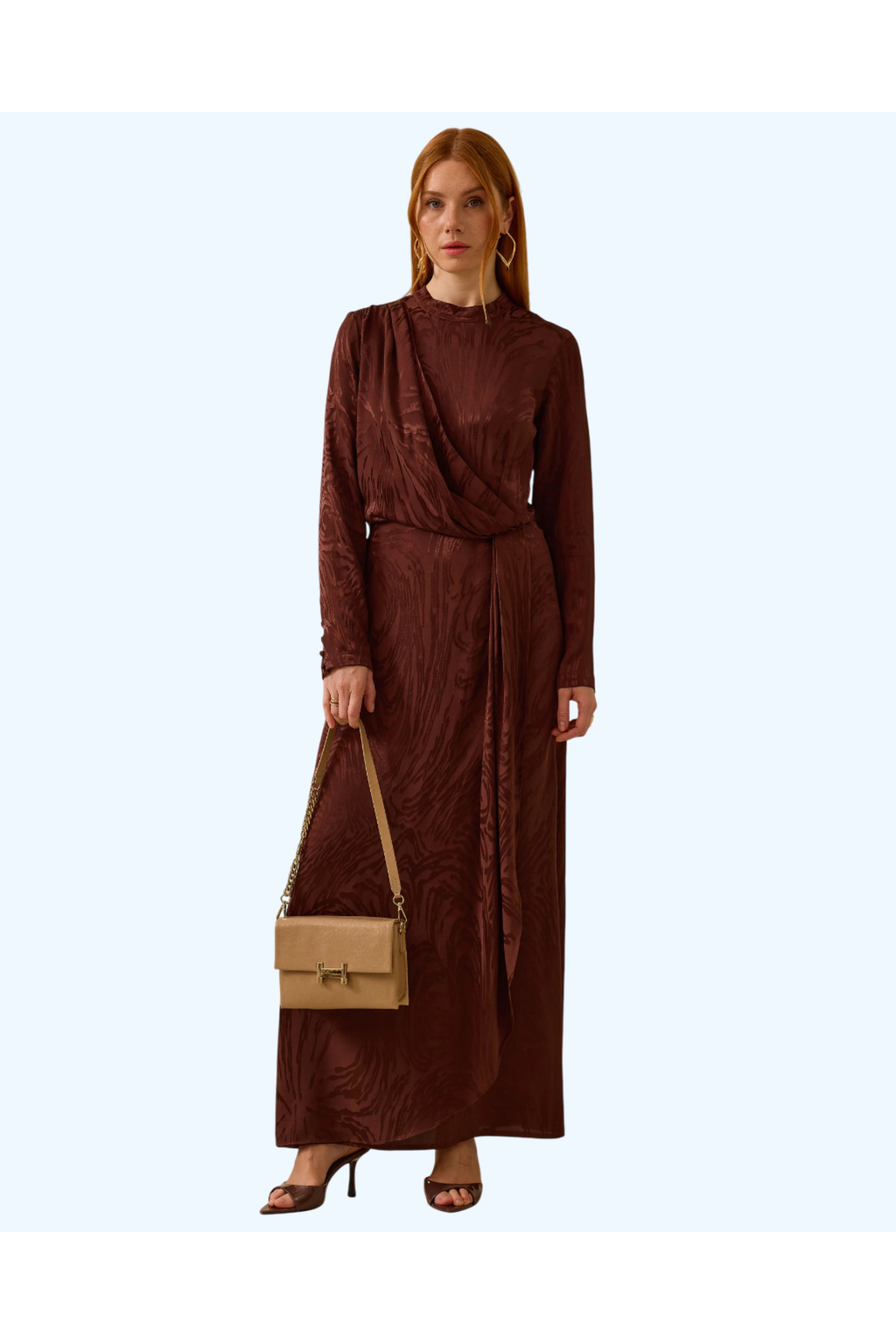 SEÇİL PARLAK DOKULU DESENLİ MAKSİ ELBİSE Özellikleri