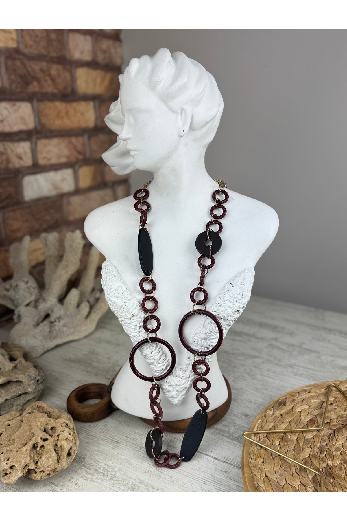 SEDEF TAKI Acı kahve halkalı uzun kolye Özellikleri