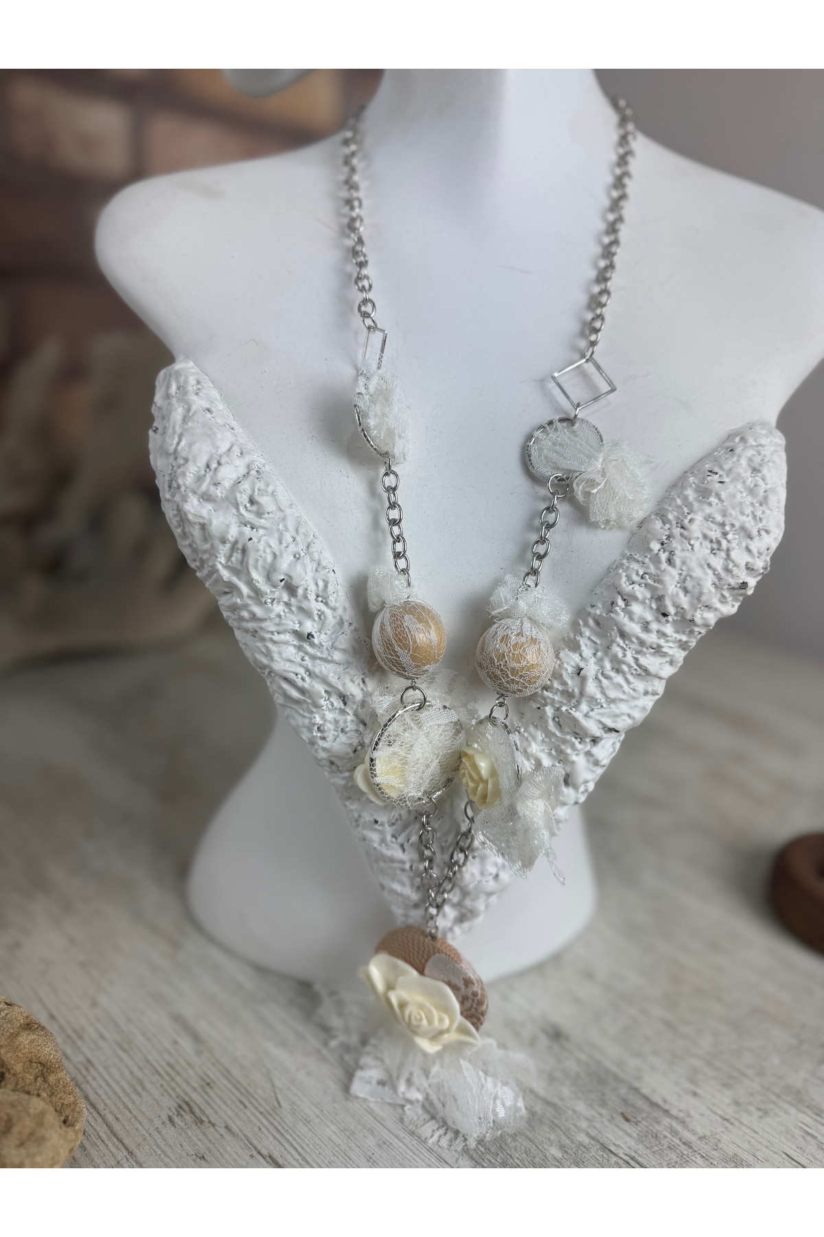SEDEF TAKI Ahşap dantelli elyapımı kolye Özellikleri