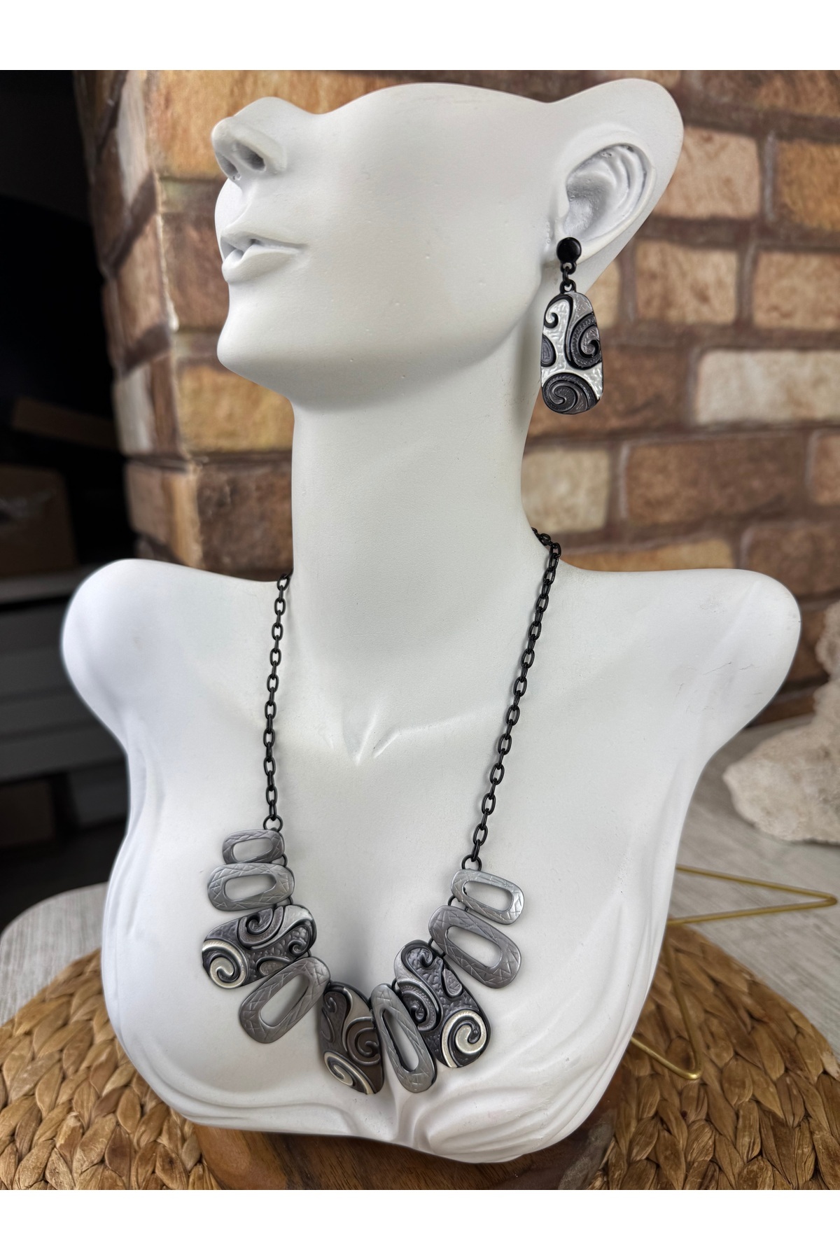 SEDEF TAKI İşlemeli mineli kolye ve küpe takım Özellikleri