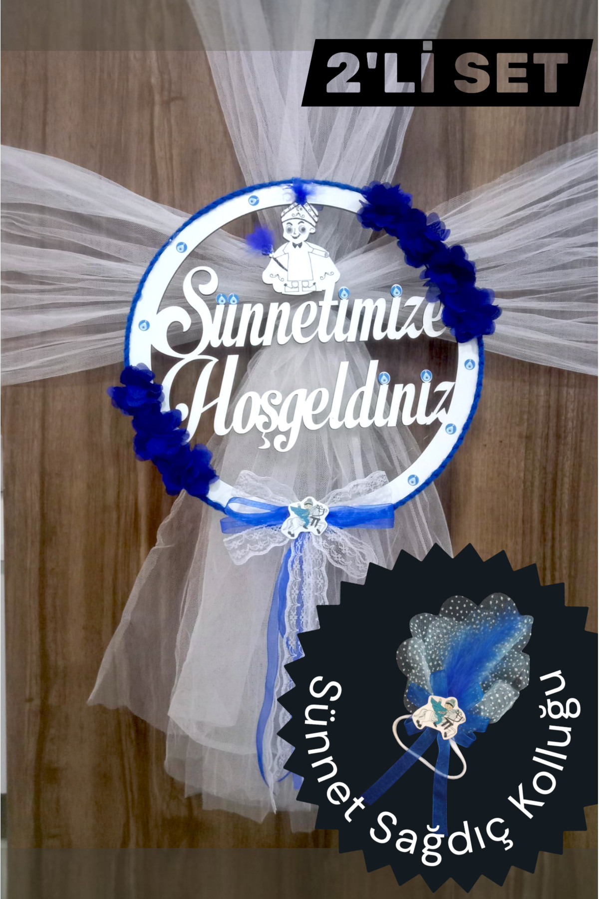 selmahobi Ahşap Sünnetime Hoşgeldiniz Kapı Süsü ve Sünnet Sağdıç Kolluğu 2'li Set
