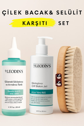 LEODİNS Selülit Ve Çilek Bacak Karşıtı Bakım Seti | At Kılı Fırçası Sıkılaştırıcı Jel Tonik