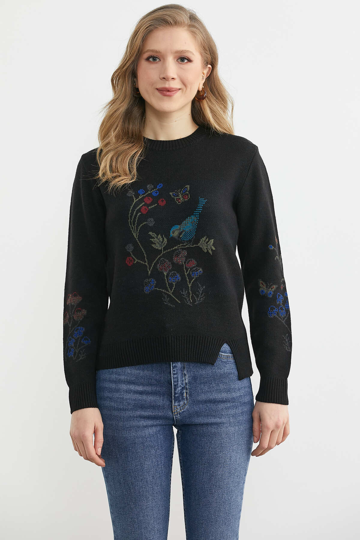 Sementa Kuş Desenli Basic Triko Kazak - Siyah Özellikleri