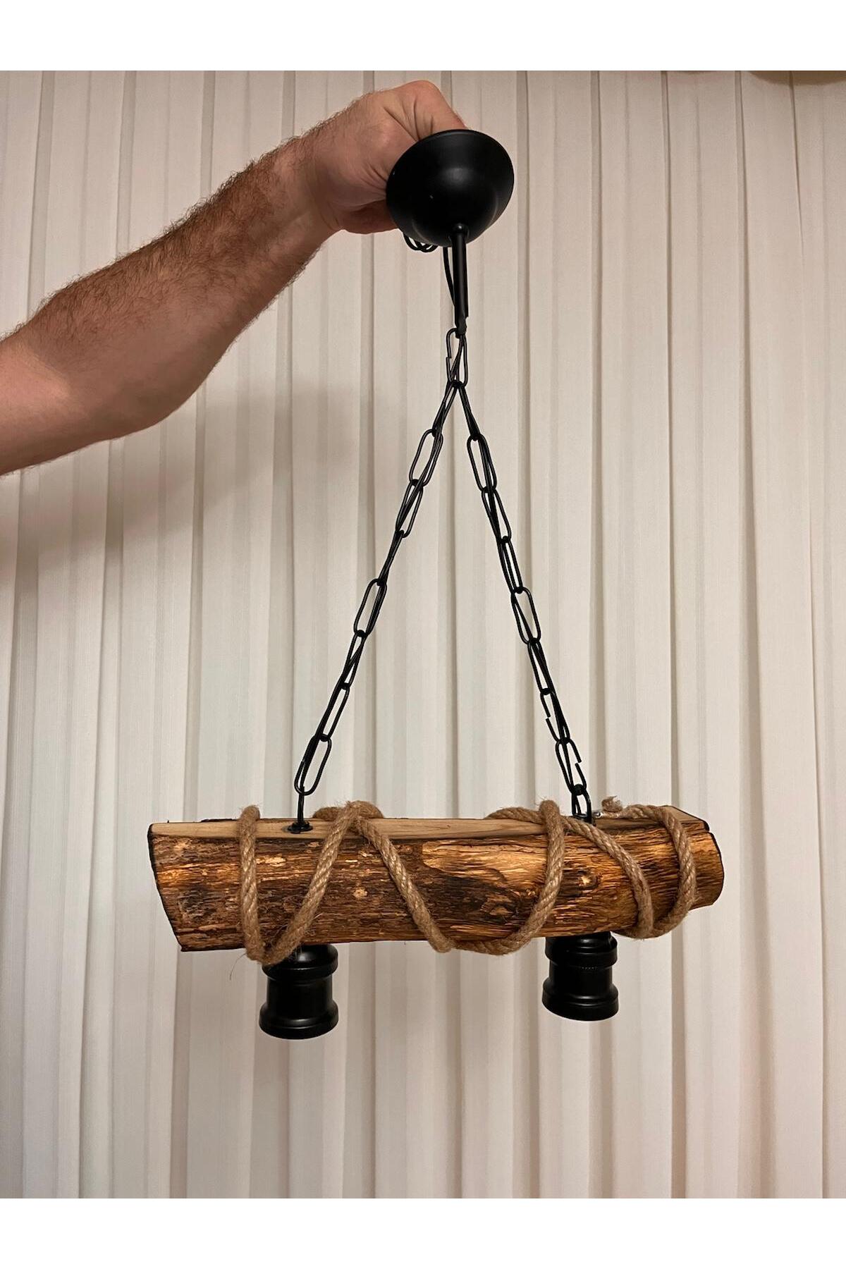 ŞEN AHŞAP AVİZE TASARIM Ahşap Eskitme halatli 2 li Avize