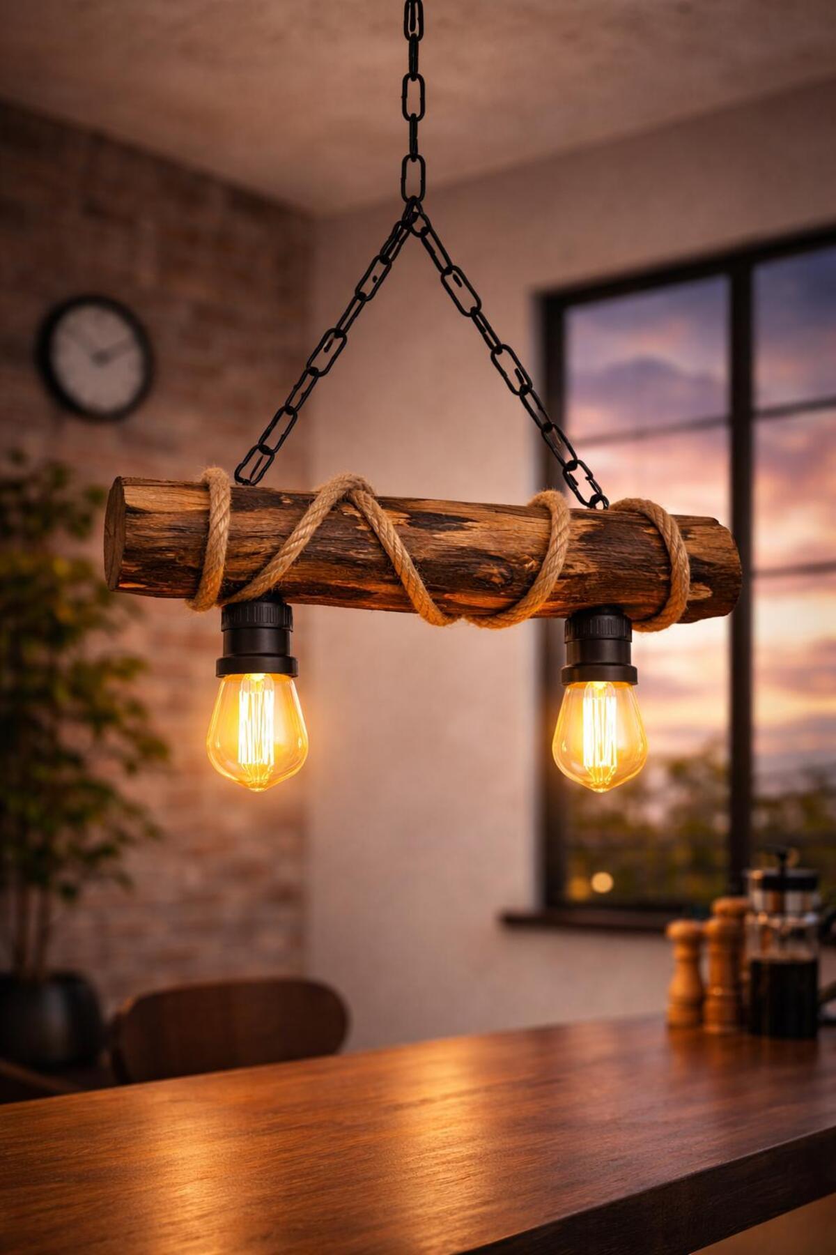 ŞEN AHŞAP AVİZE TASARIM Ahşap Eskitme halatli 2 li Avize Özellikleri