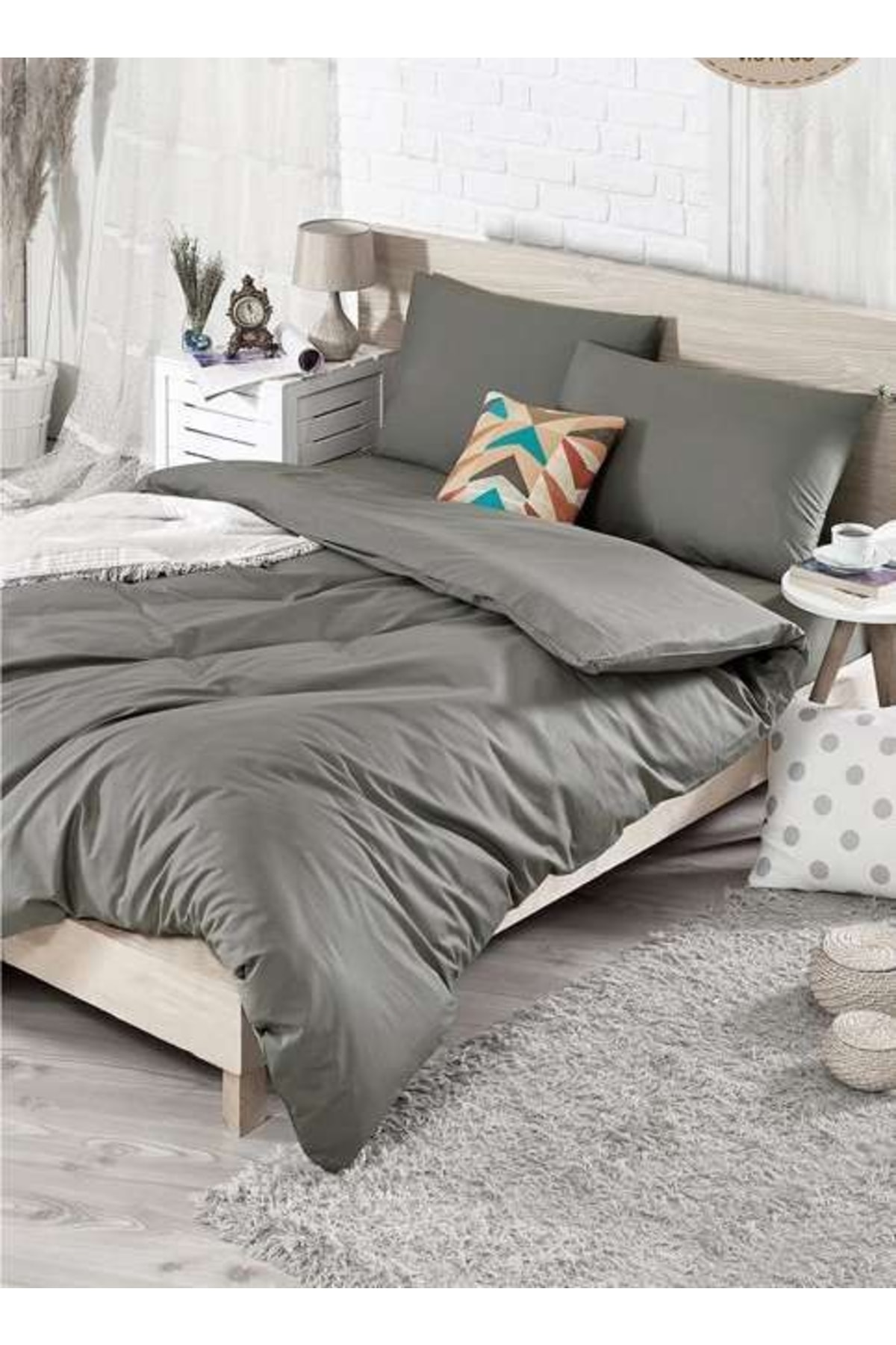 ŞENER HOME Çift Taraflı Kullanılabilen Çarşafı Lastikli Tek Renk Tek Kişilik Nevresim Takımı - Gri Özellikleri