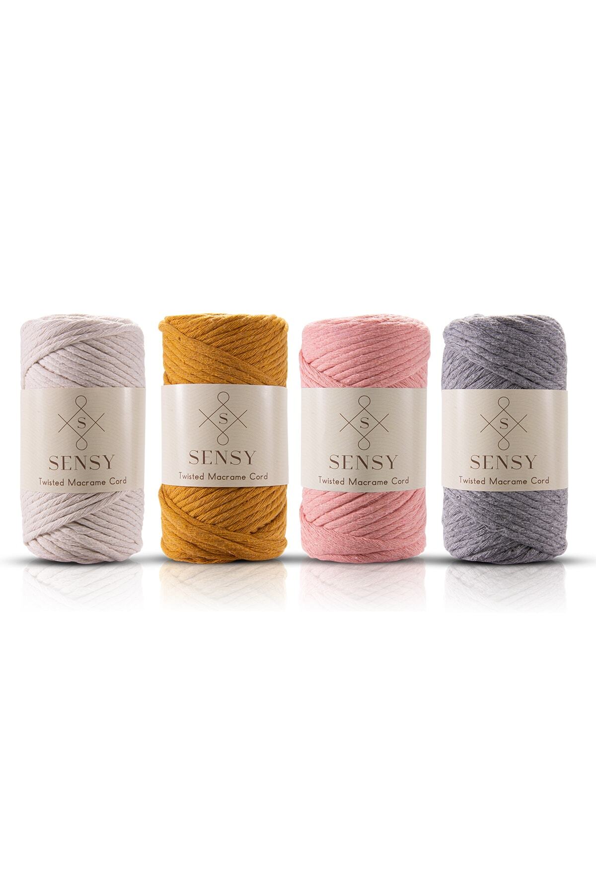 SENSY Premium Taranan Iplik Makrome Makrame Hobi Ipi 4lü Set Ekru-Hardal-Somon-Açık Gri Makrome Ip