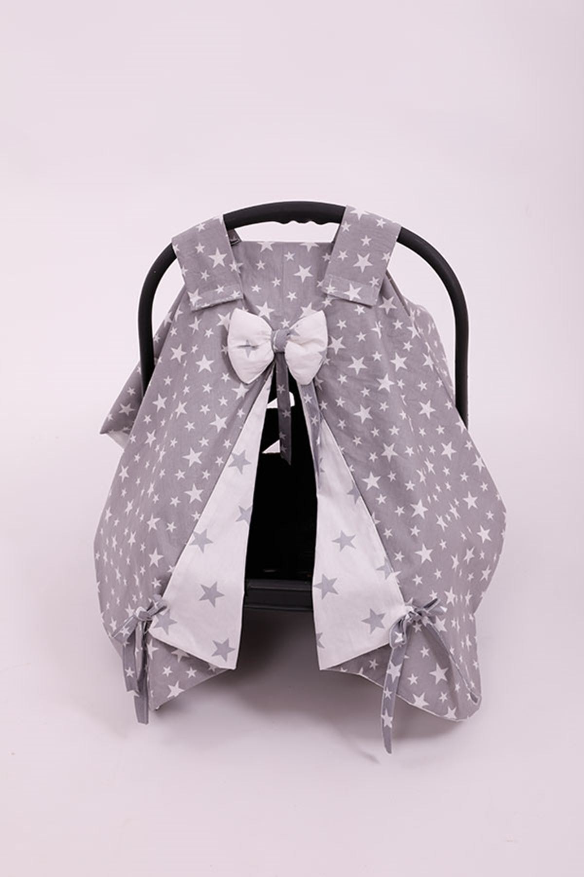 serkan avm Puset Örtüsü "gri Yıldızlı " %100 Pamuk Kumaş Çift Kat