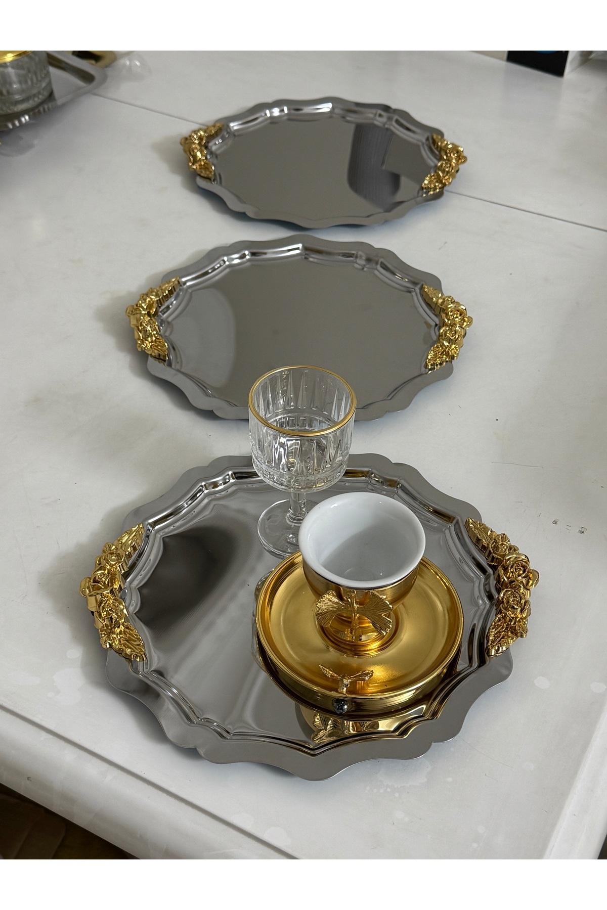 SEVA ÇELİK ÇELİK YUVARLAK DALGALI 3 ADET KULP AKSESUARLI SUNUM TEPSİSİ Özellikleri