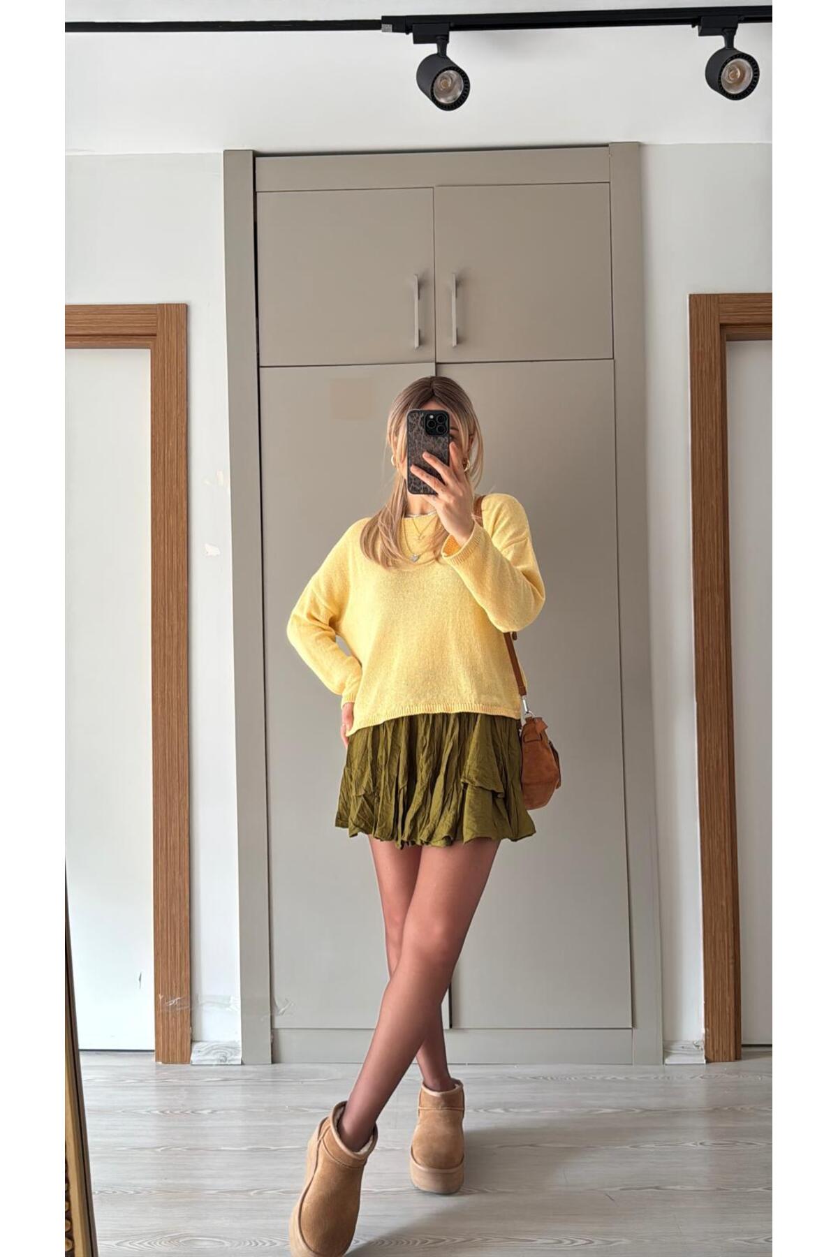 SEVA TEKSTİL Naturel Yaka Basic Triko Mint Sarı
