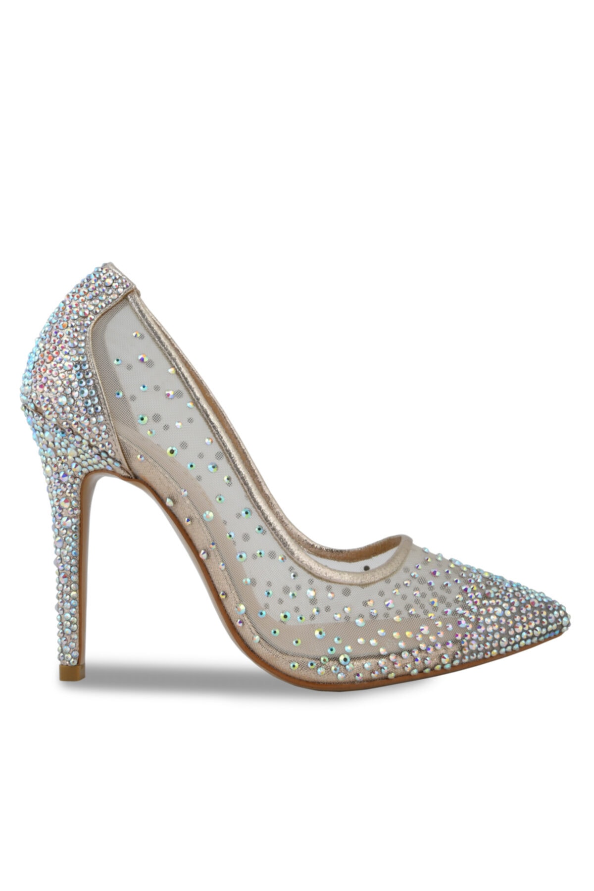 Sevim Ayakkabı ???kadın Sindirella Abiye Taşlı Fileli Stiletto Ayakkabı