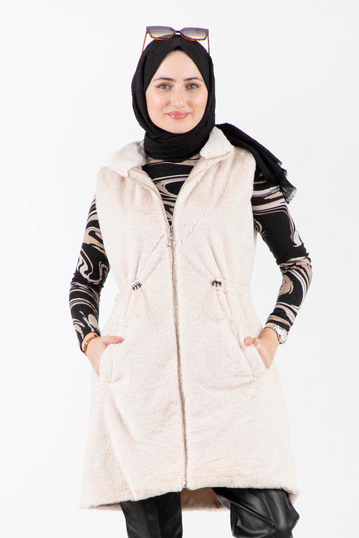 Sevitli Peluş yelek-Bej