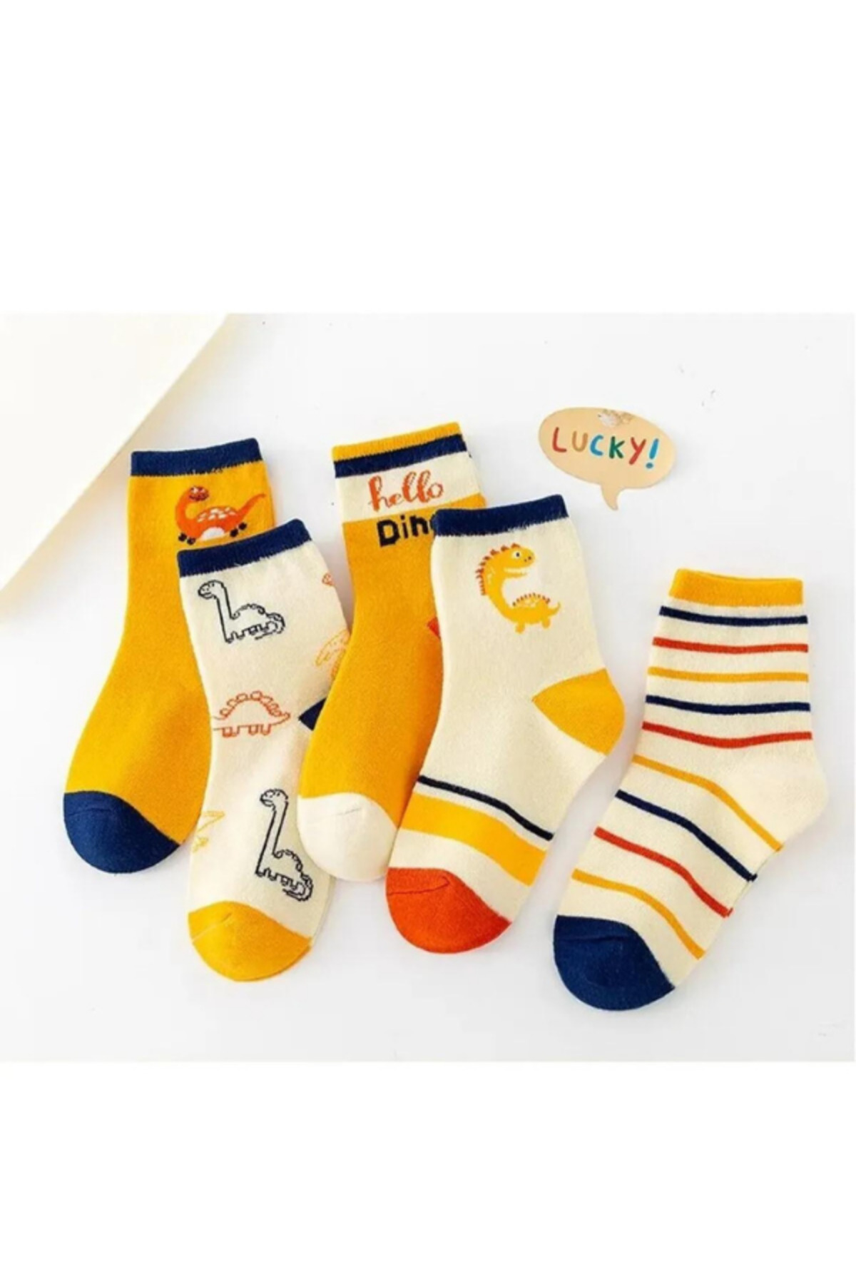 SEVORIA 5 Çift Dinazor Desenli Bebek Çorap Ve Çocuk Çorabı