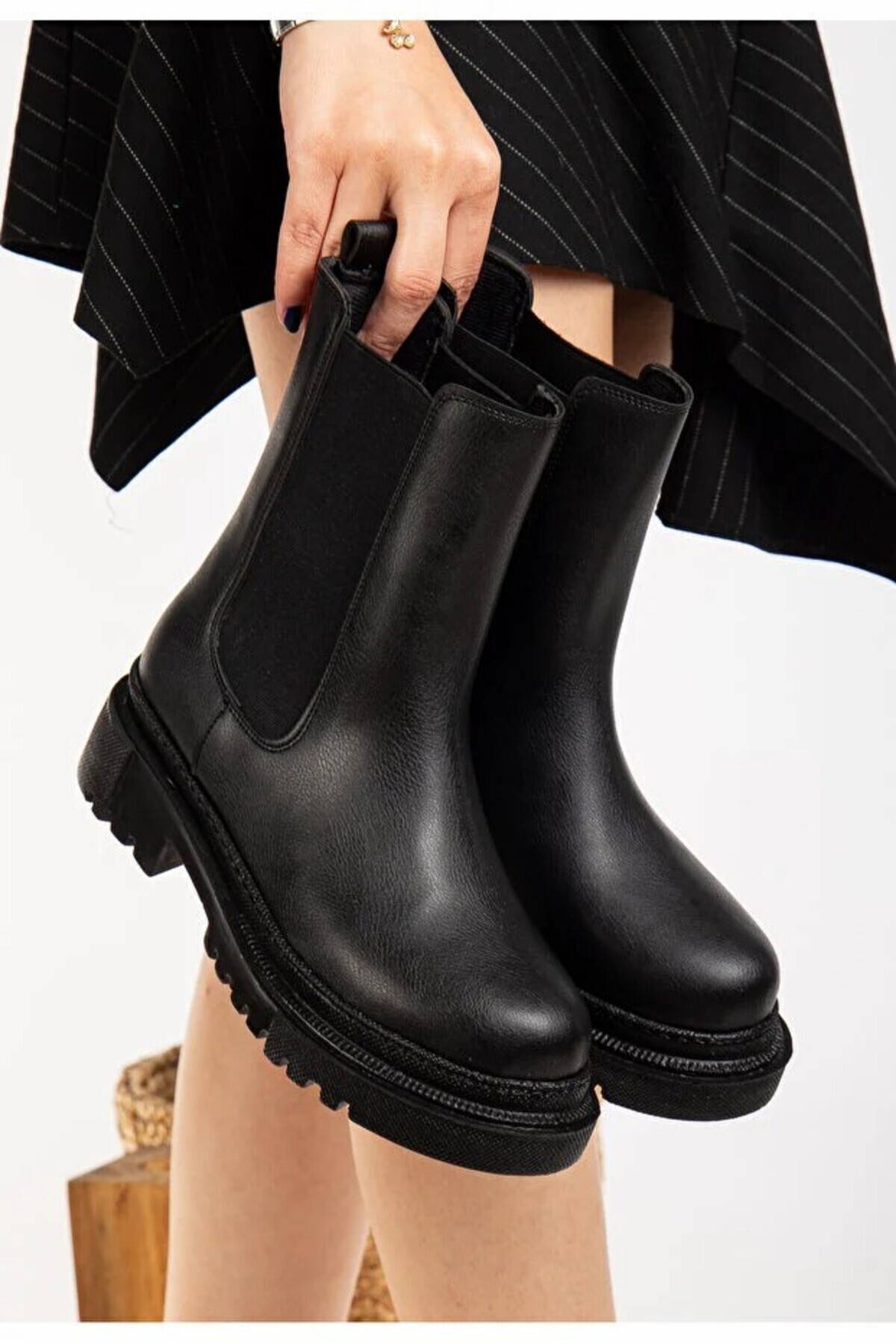 SH SİLVER MODA Kadın Bej Yandan Lastikli Bot Kadın Bej Kalın Taban Bot Kadın Günlük Bot Özellikleri