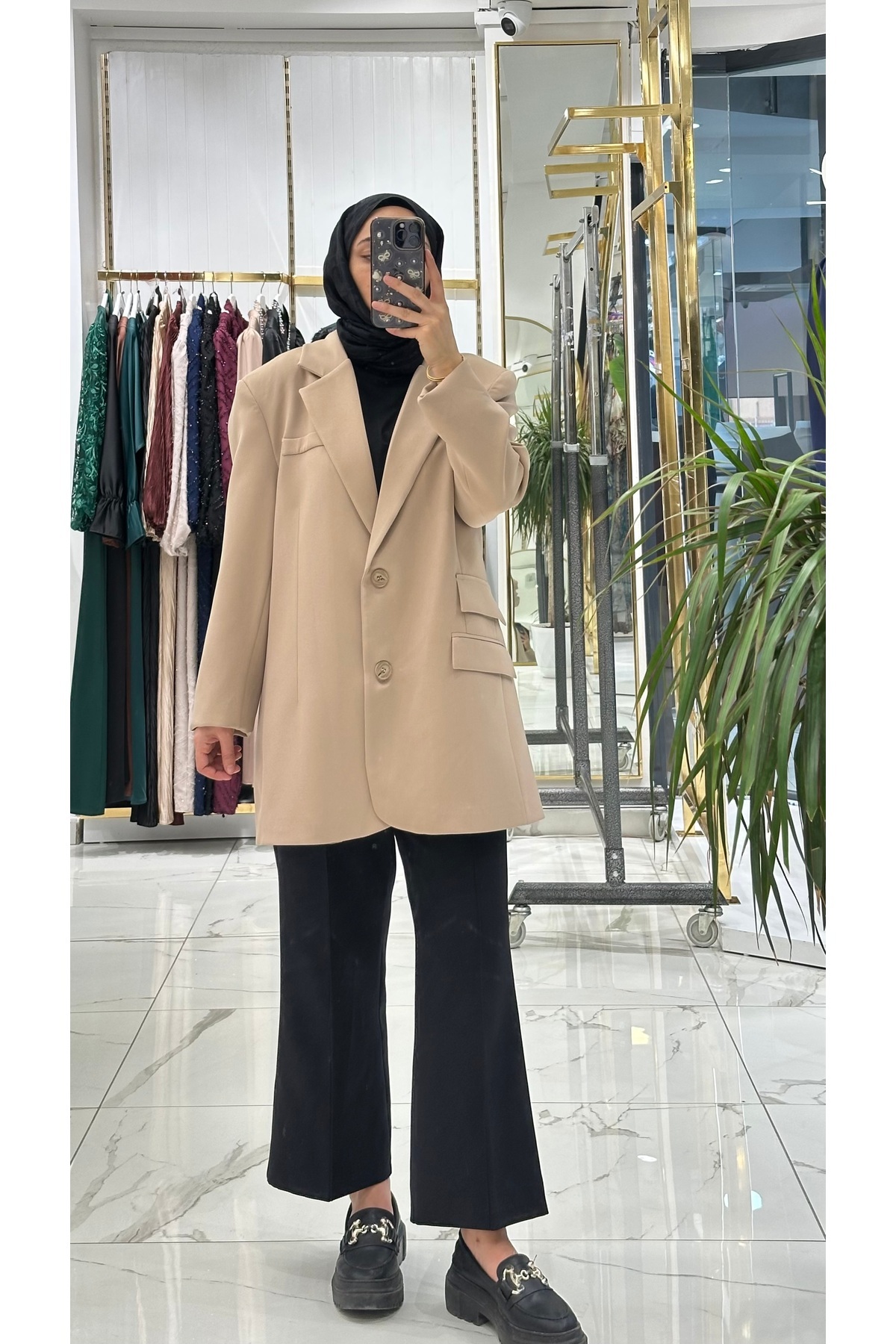 She Olive Çift düğmeli blazer ceket Özellikleri