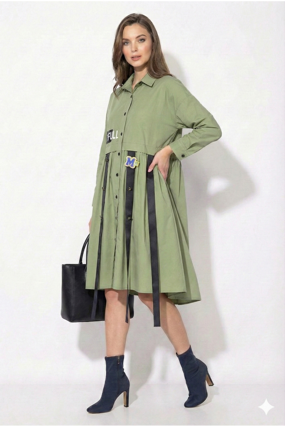 shE tekstil Tasarım Şerit Detaylı Gömlek Elbise Özellikleri