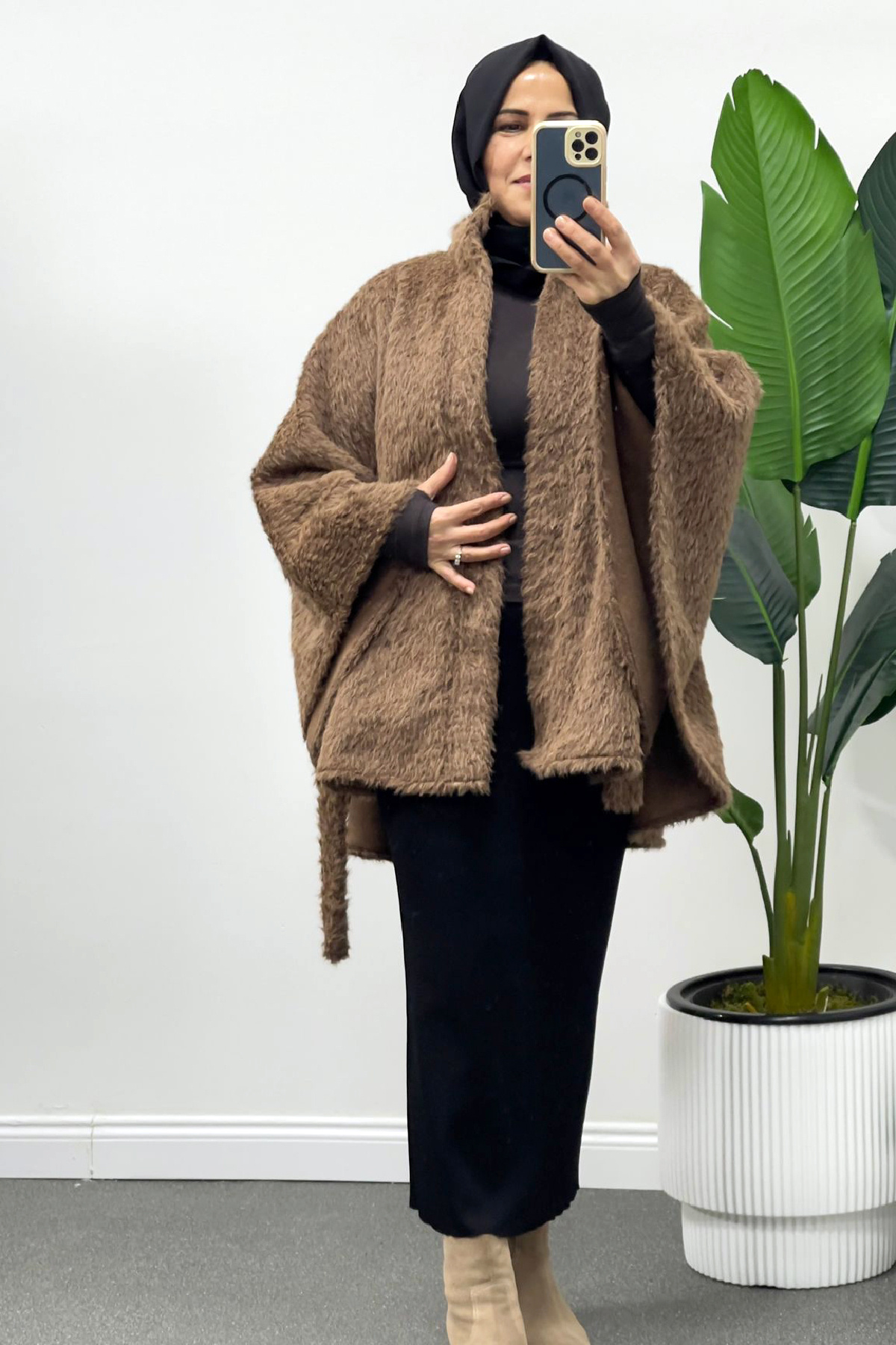 Shenay Peluş Kahve Ceket
