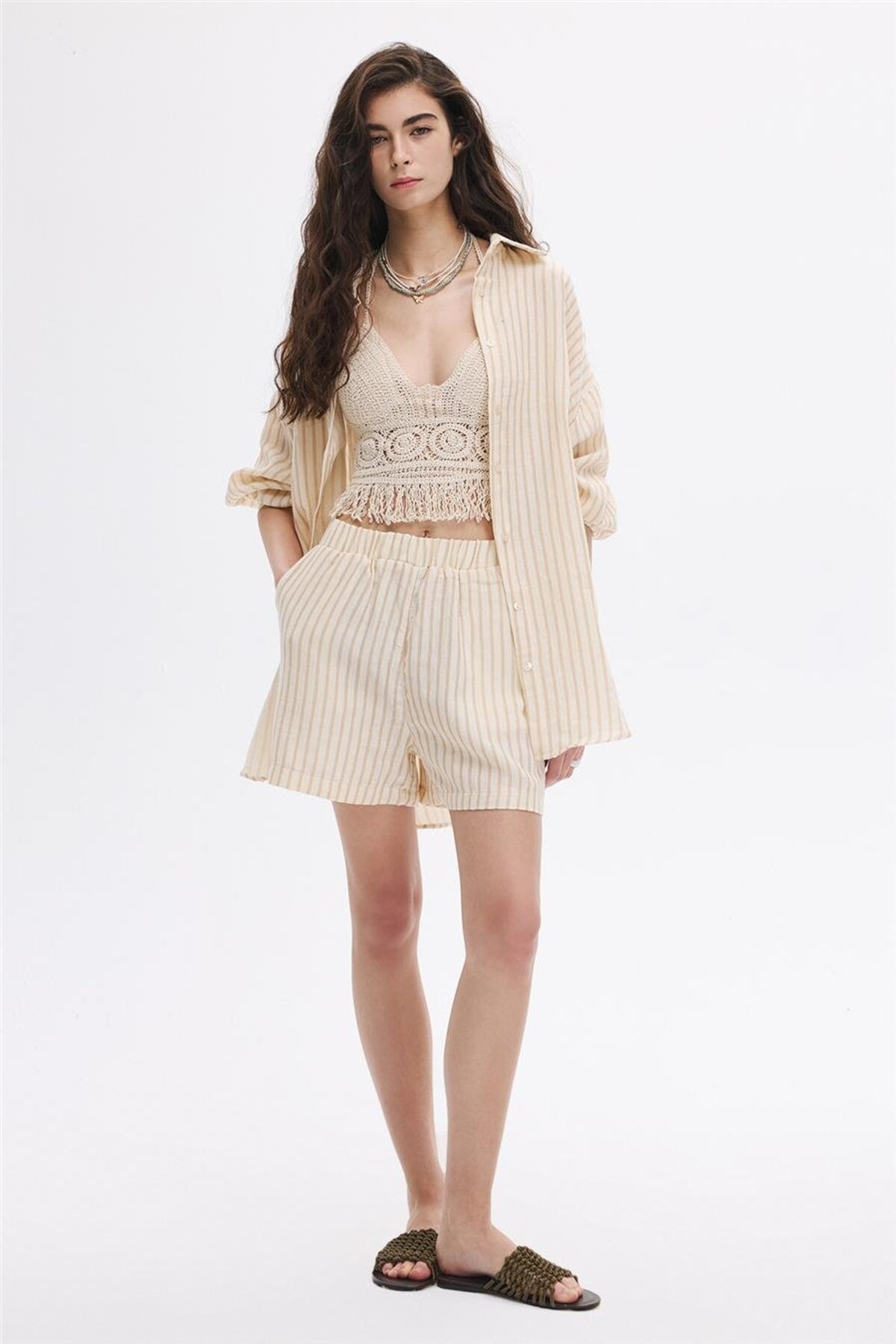 SHERIN Bej Çizgili Şort Özellikleri