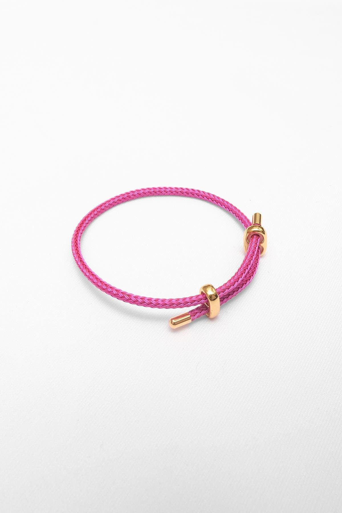 SHERIN Pembe Ayarlanabilir Çelik Detaylı Örme İp Bileklik (Tekli)