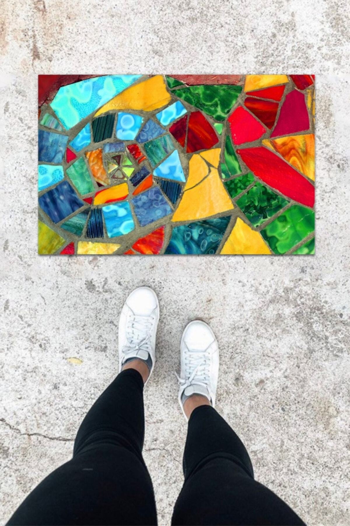 Silkcoat Home Dijital Baskı Çok Renkli Dış Ve Iç Mekan Kırık Mozaik Desen Kapı Önü Paspası