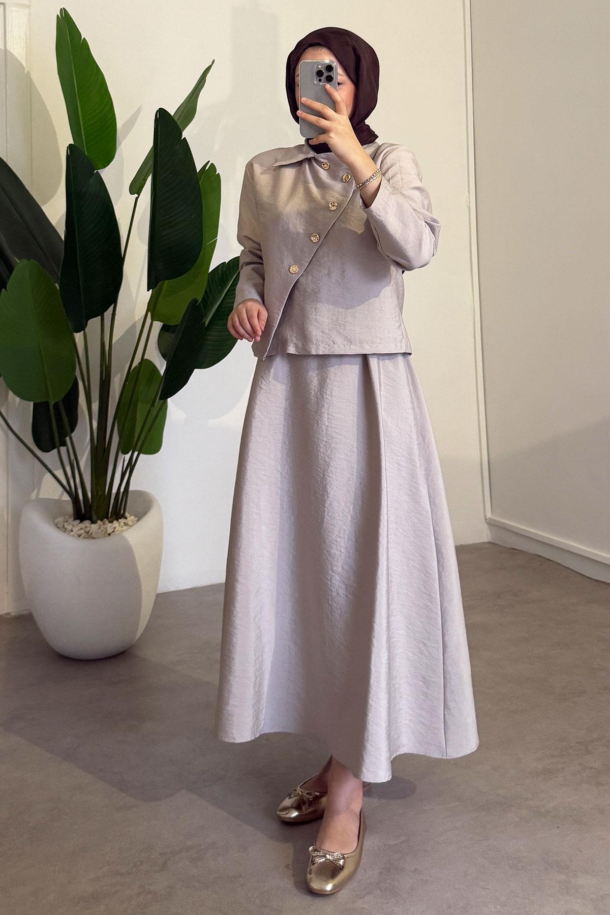 SİNDAL Düğmeli Modal Takım - Bej
