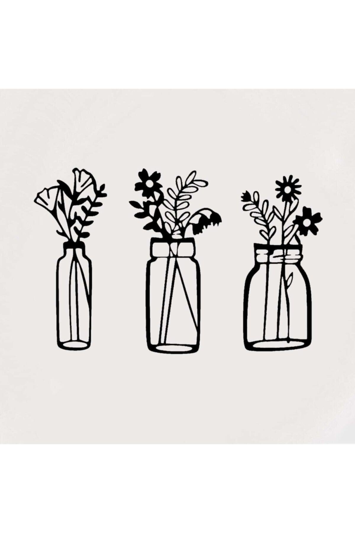 Şirin Lazer Mdf Ahşap Saksıda Çiçekler 3 Lü Set Duvar Dekoru Tablo