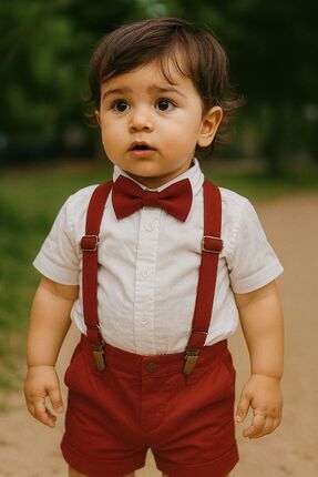 NEKİBUKİ Bloom Store Kırmızı 1-6 Yaş Pantolon Askı Papyon Seti