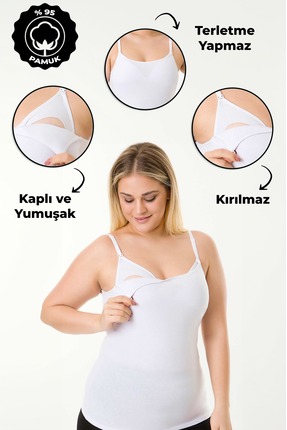 Nbb 3050 Kadın Pamuklu İnce Askılı Boş Kap Desteksiz Balensiz Esnek Rahat Emzirme Atleti