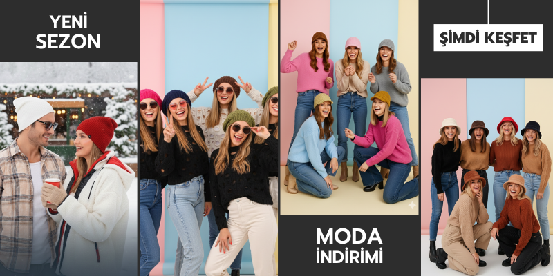 Eke Tekstil Unisex Katlamalı Siyah,pembe,beyaz 3'lü Bere Seti