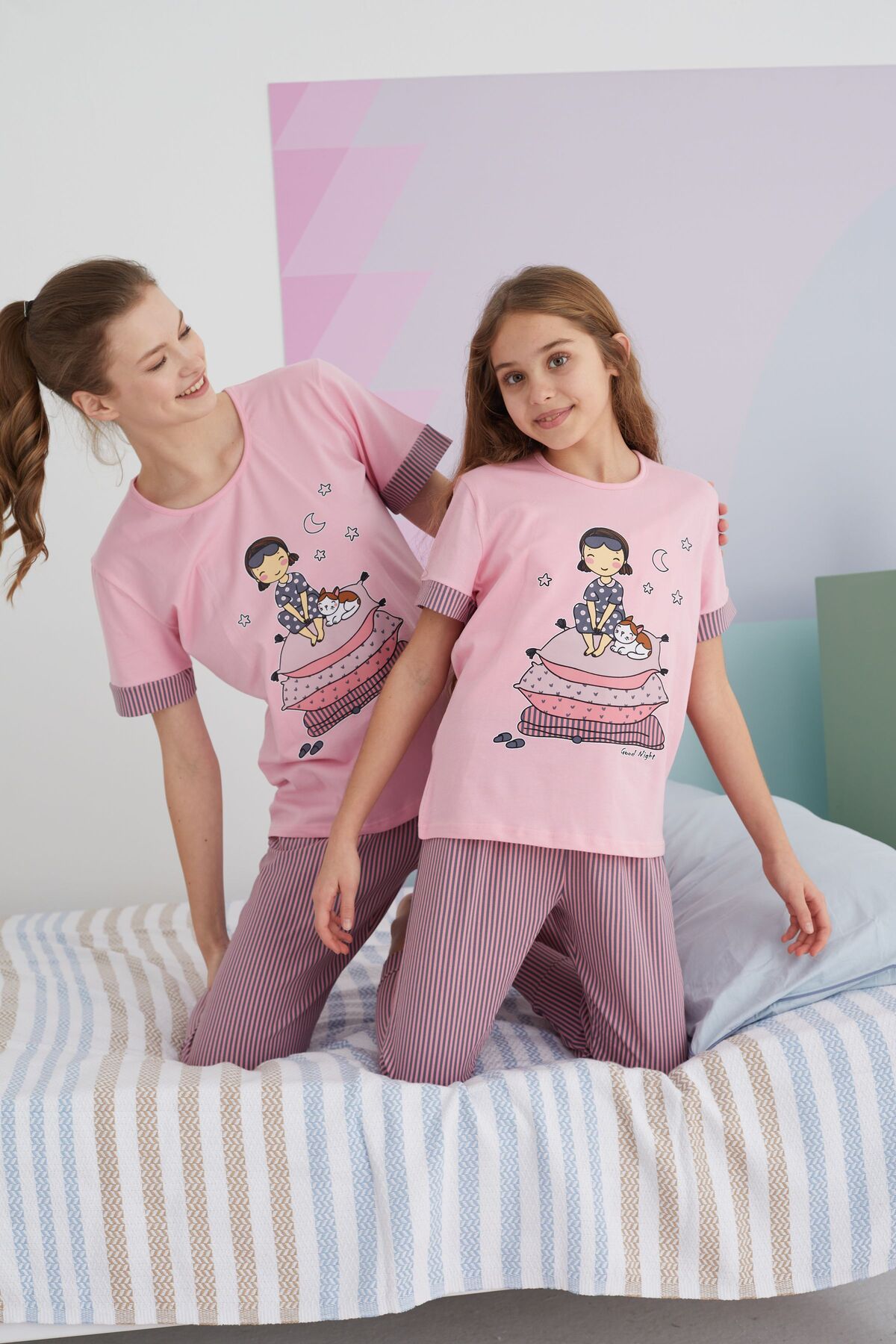 Siyah İnci çok renkli Pamuklu Örme Pijama Takım
