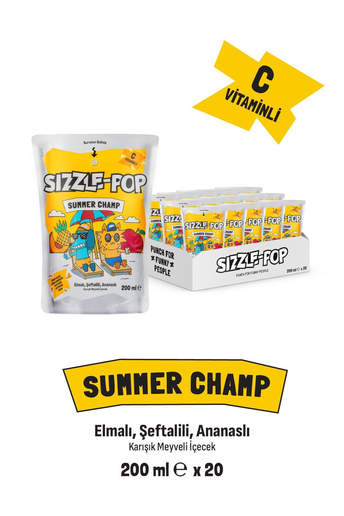 SIZZLE-POP SUMMER CHAMP ŞEFTALİ ELMA ANANAS MEYVE SUYU 200 ML X 20 ADET
