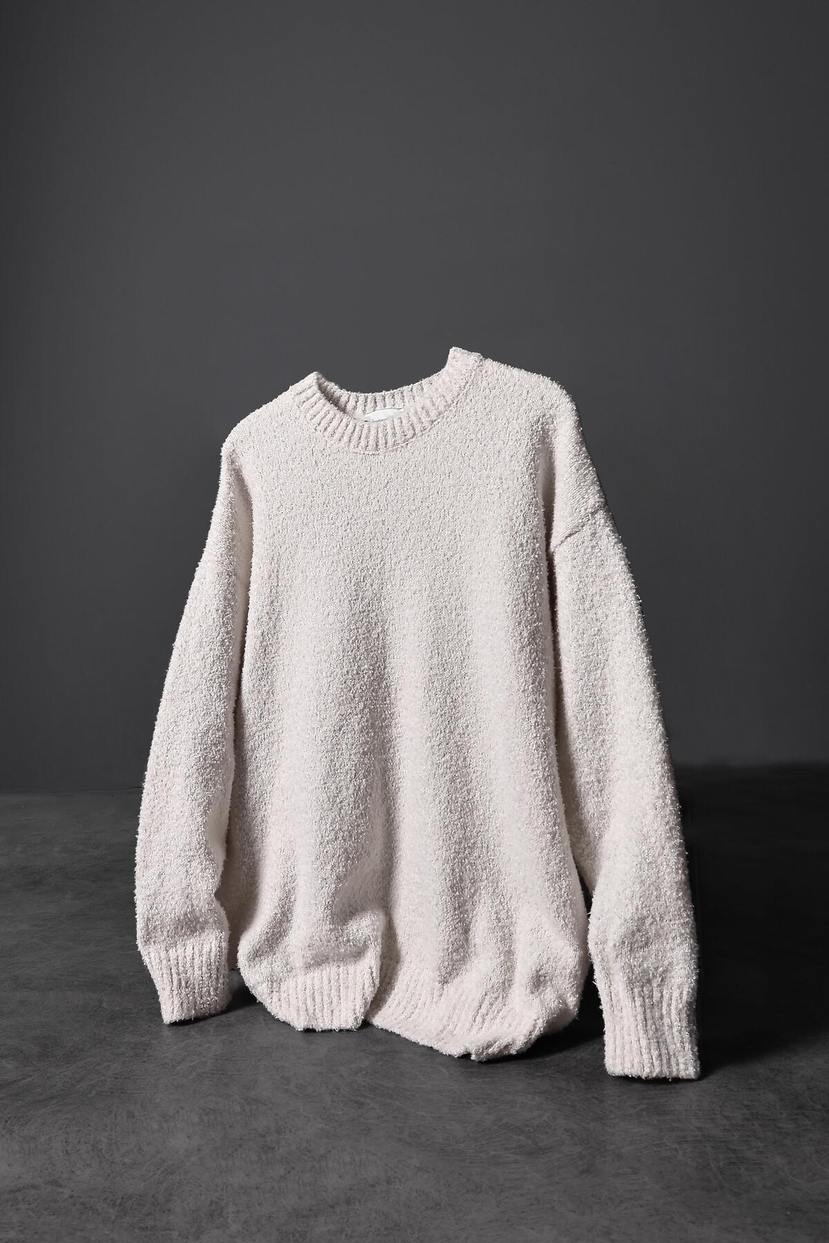 Slatra Erkek Ekru Bisiklet Yaka Oversize Yün Kazak Özellikleri