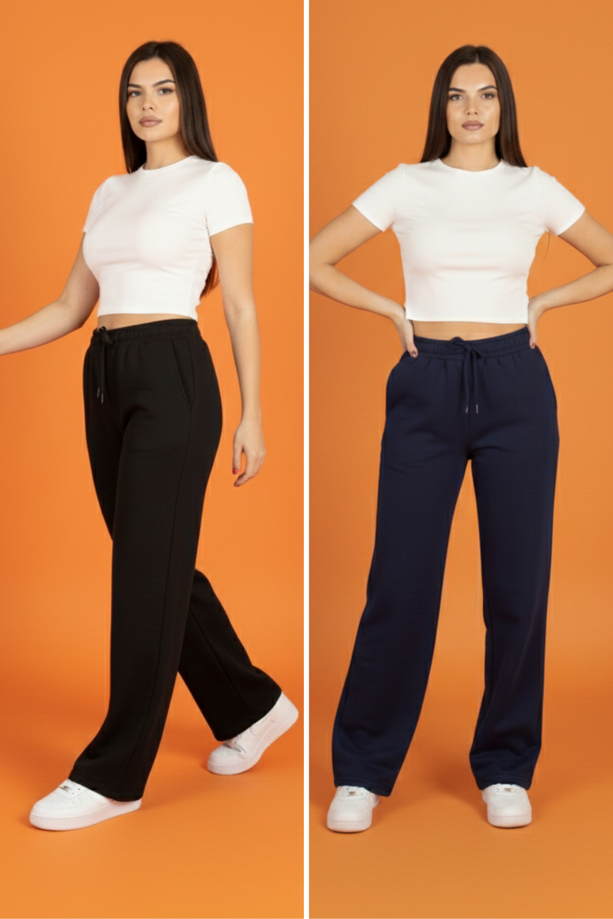 soft&basic Kadın 2'li Modal Boru Paça Baskılı Pantolon