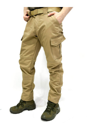 Ghassy Co Erkek Içi Polarlı Tactical Outdoor Su Geçirmez Koyu Bej Softshell Pantolon