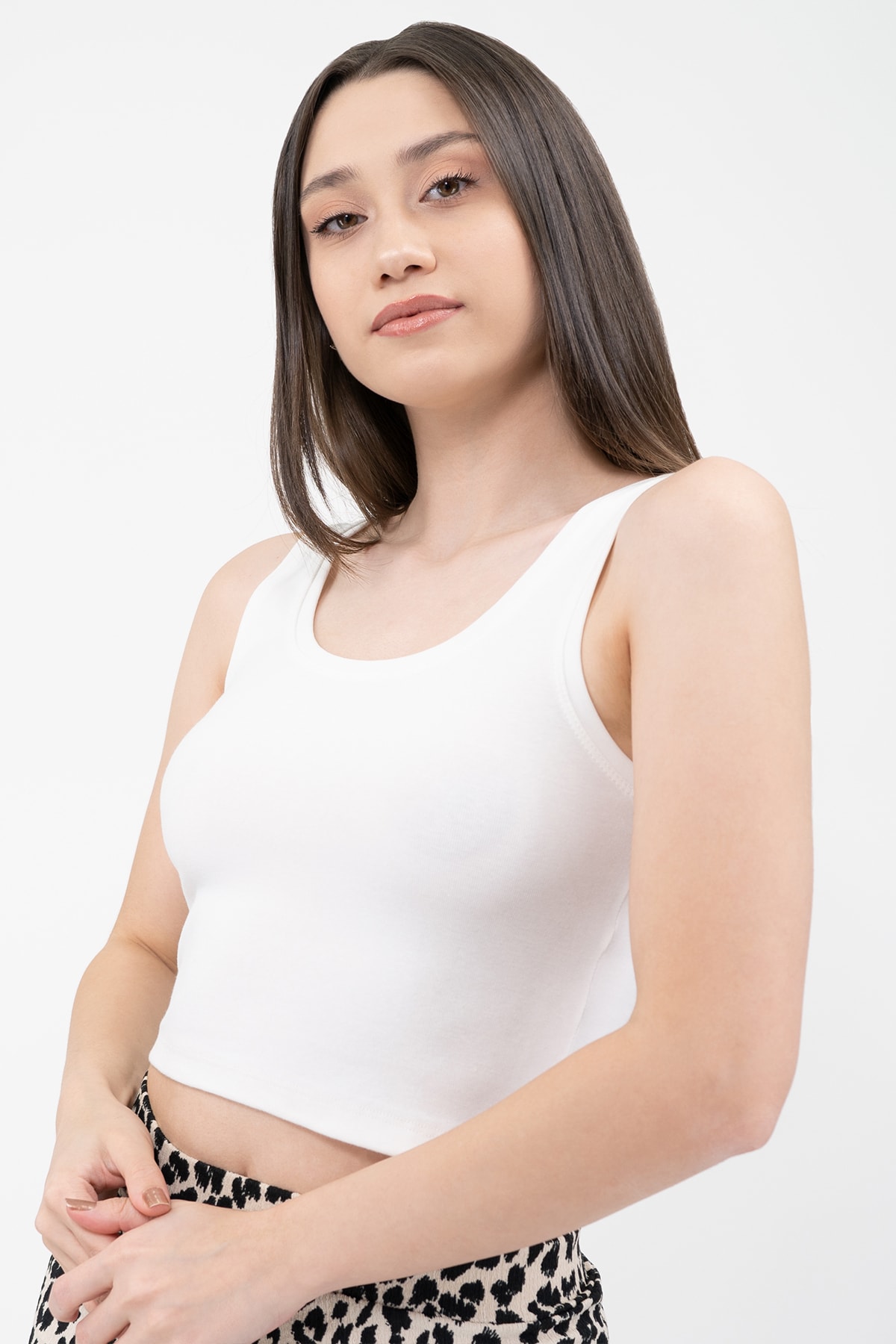 Soyo Kadın Ekru Pamuklu Basic Örme Crop Atlet