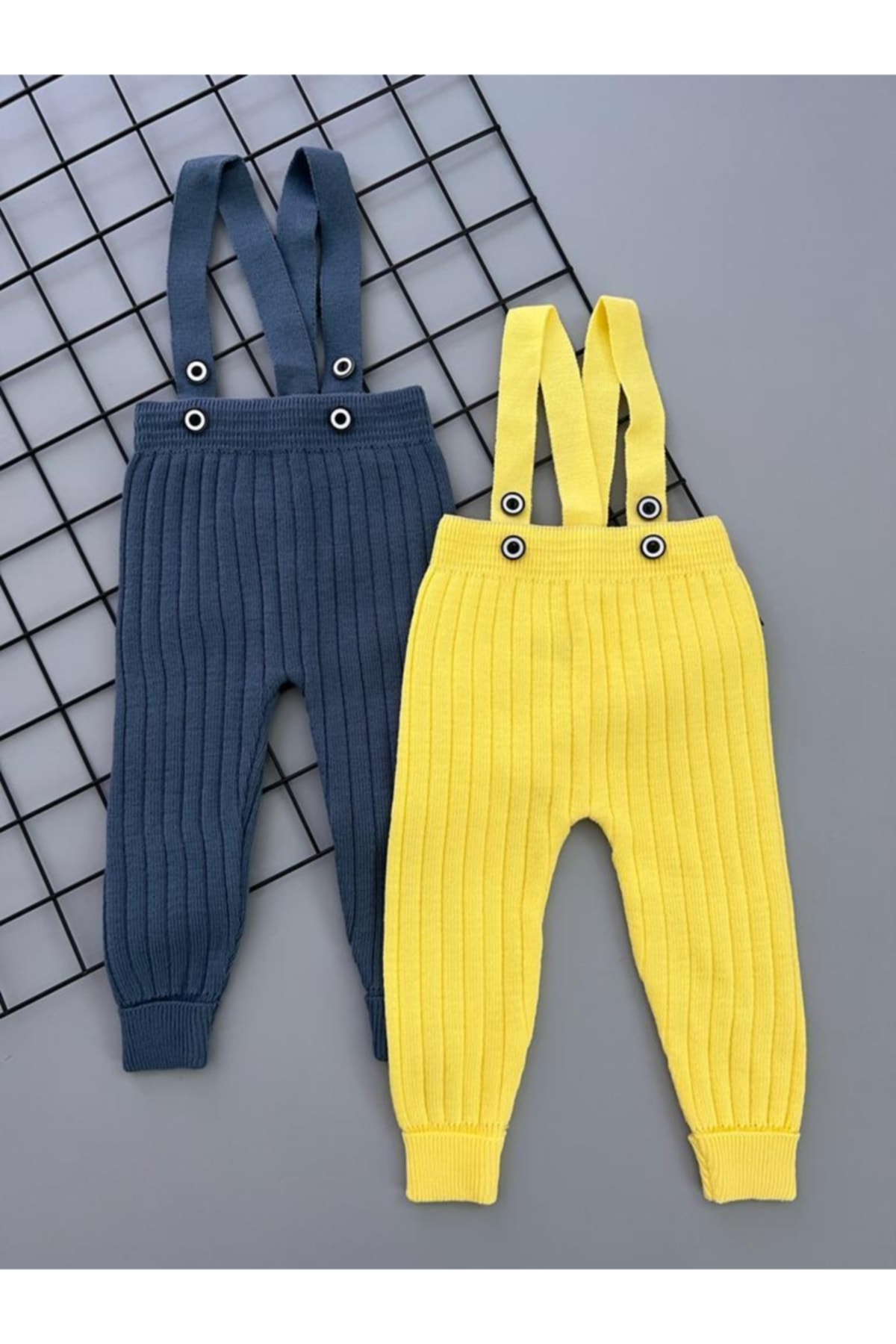 Sparrow Laurel Indigo Ve Sarı Set Önden Düğmeli Askılı Ayarlanabilir Unisex Bebek Triko Salopet Tayt Pantolon Özellikleri