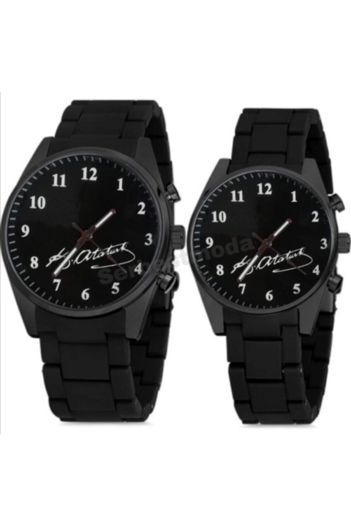 Spectrum Serbestmoda Kemal Atatürk Imza Basklı Çift Kol Saati Erkek Bayan Saat Kombini