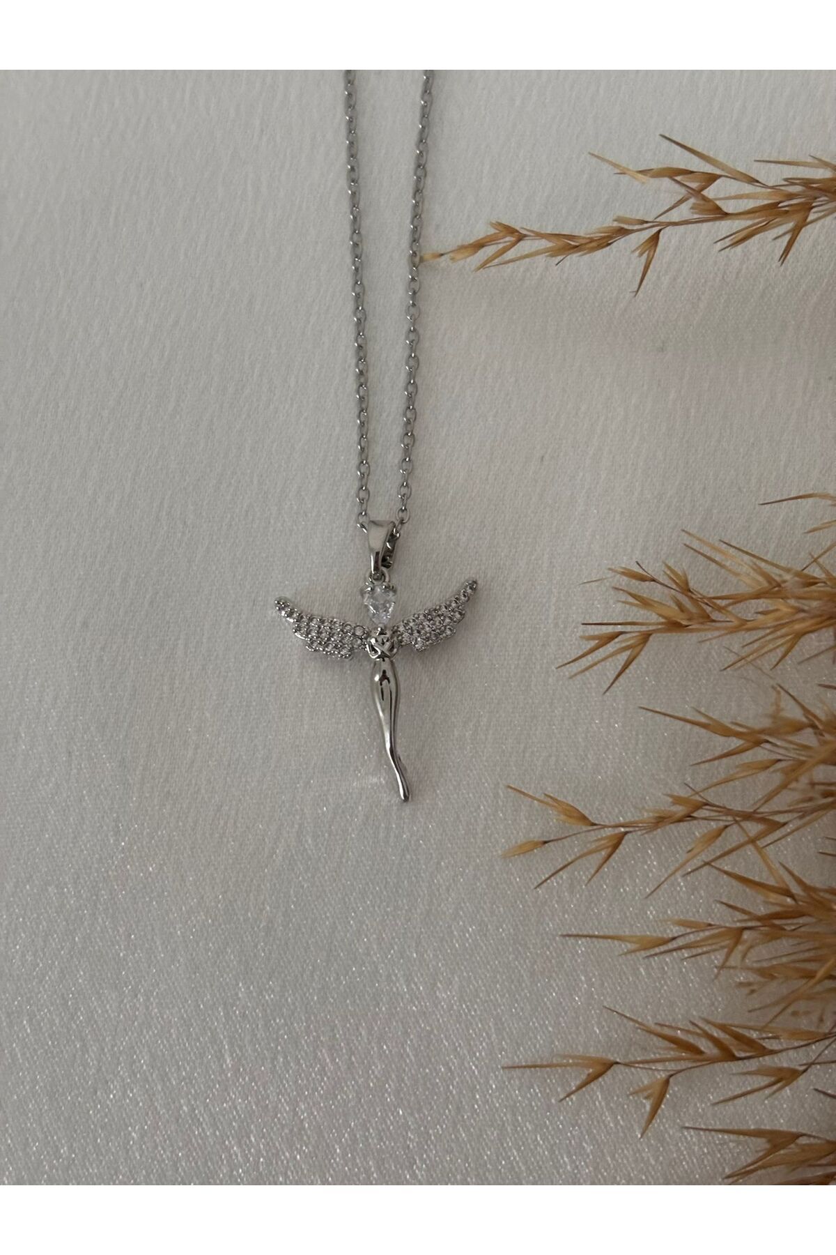 stainless steell Silver Kanatlı Melek Figür Çelik Kolye