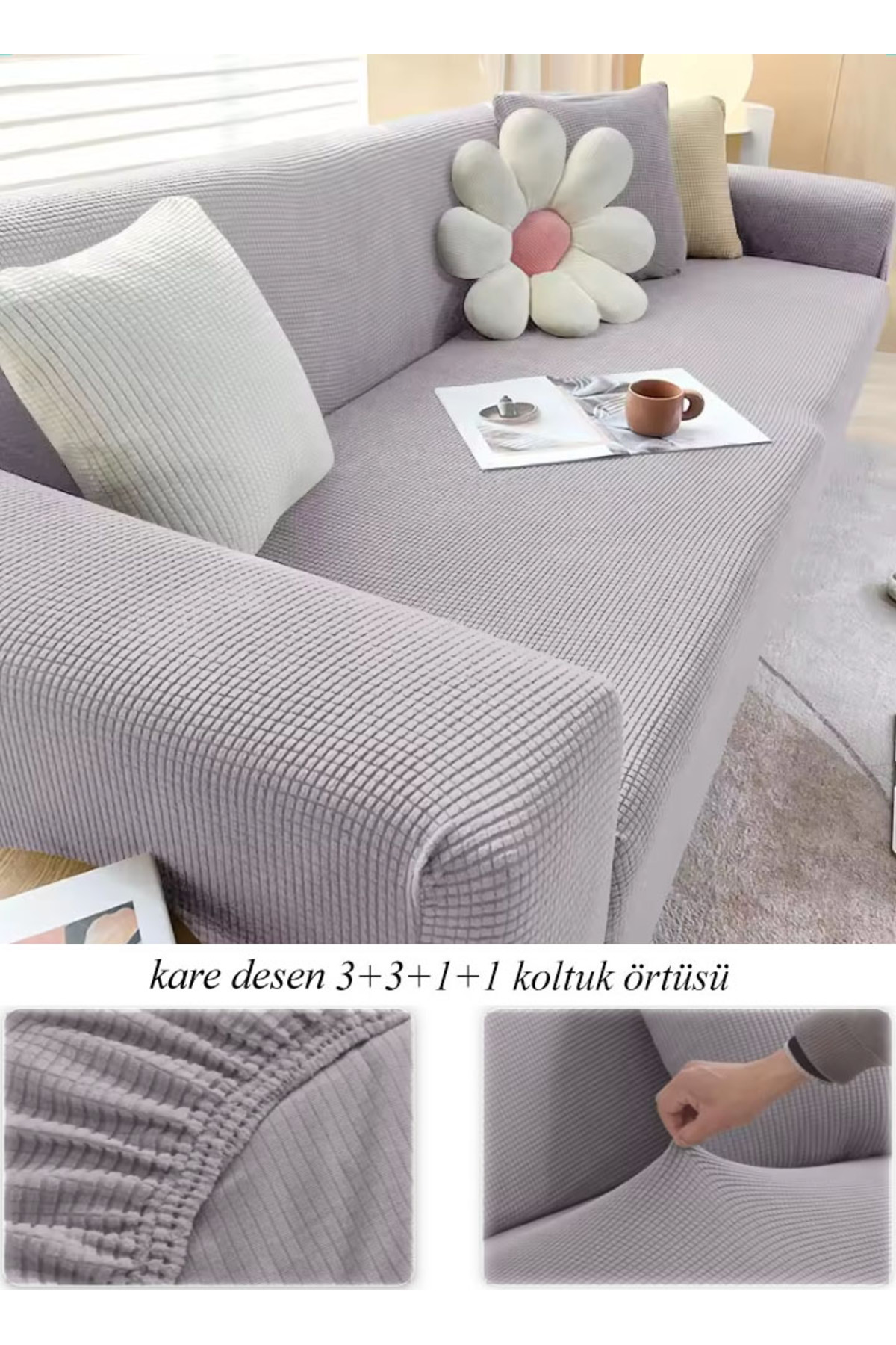 StarMall Streç Lastikli Esnek Yikanabilir Kare Desen Berjer Kotuk Örtüsü Takımı 3+3+1+1 Özellikleri