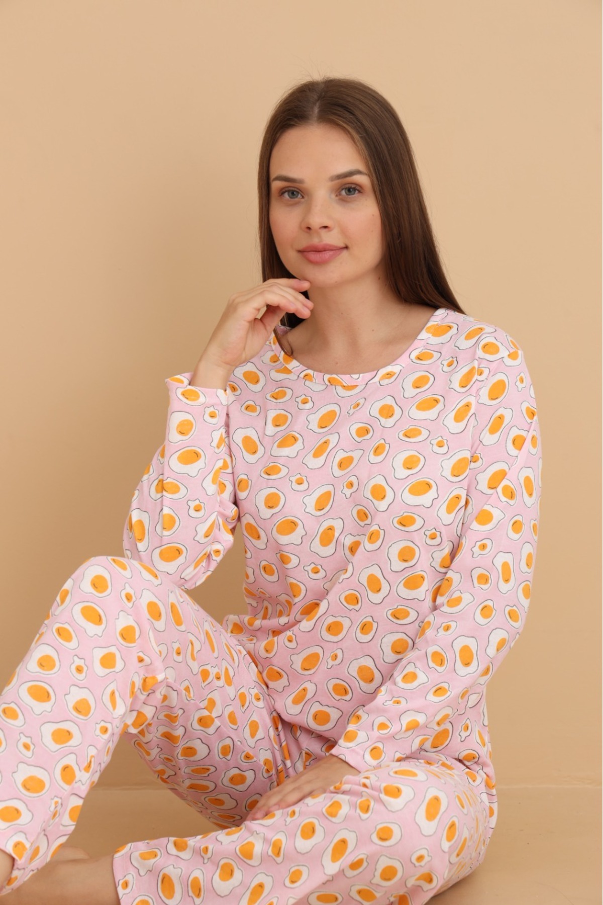 STELLAPİNK YUMURTA DESENLİ UZUN KOL PAMUKLU PİJAMA TAKIMI - PEMBE