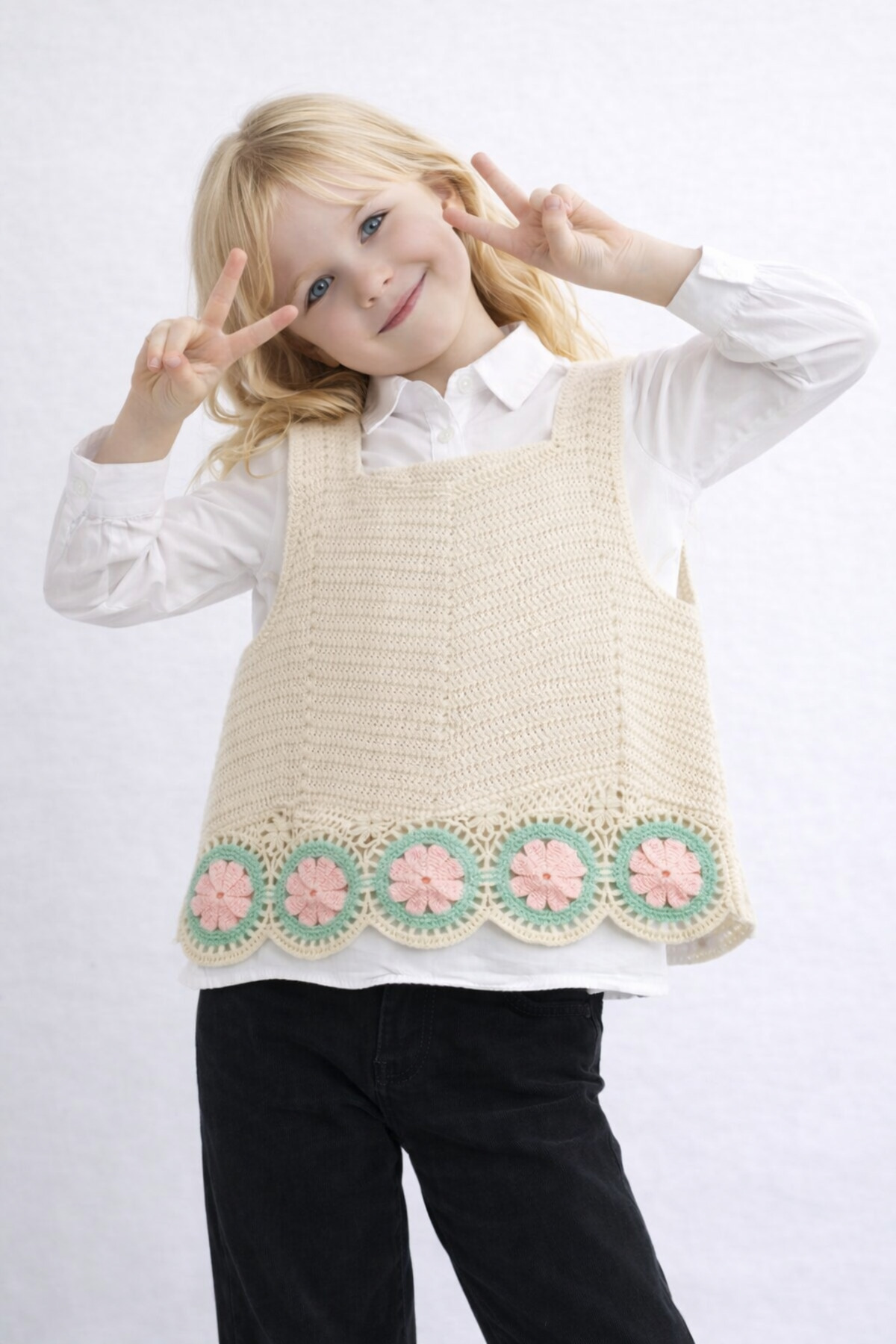 Store Çiçek Sütunlu Örme Süveter