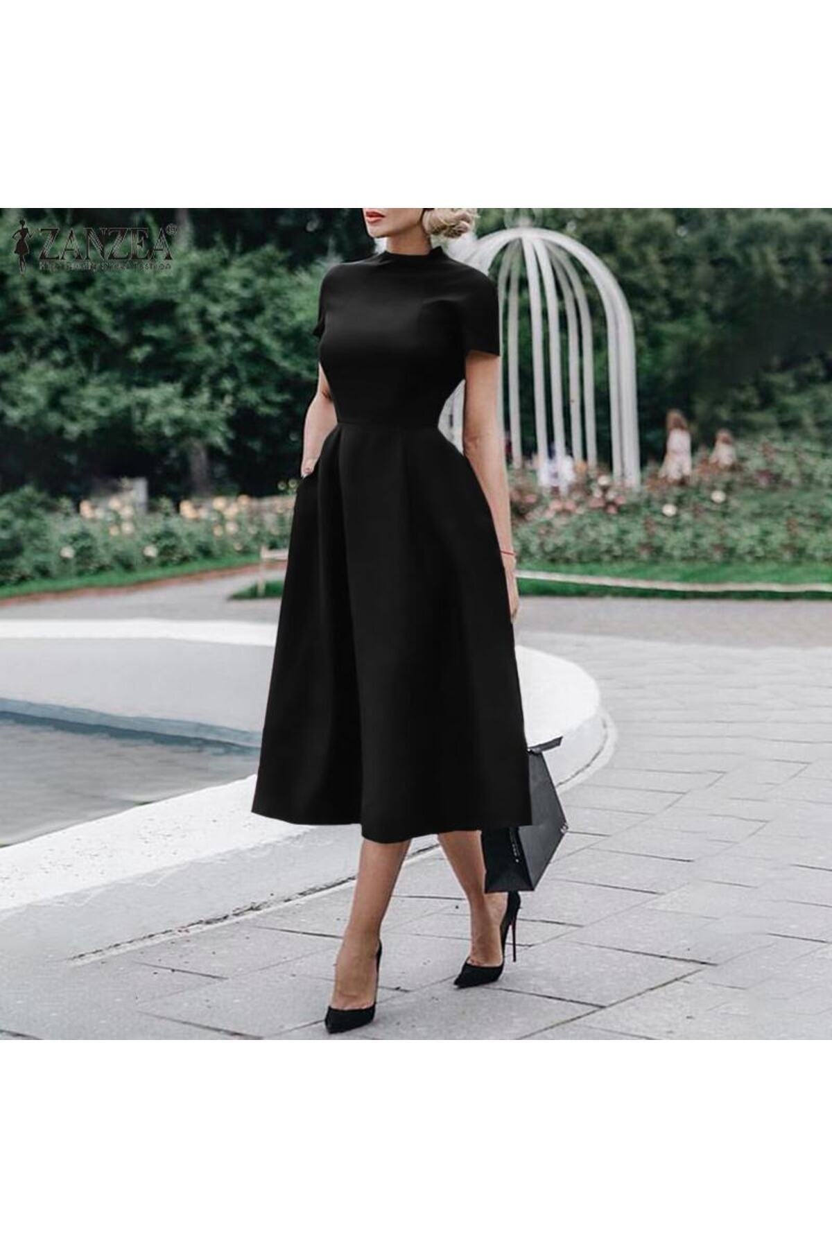 Styling Park Kısa Kol Cepli Midi Boy Elbise Özellikleri