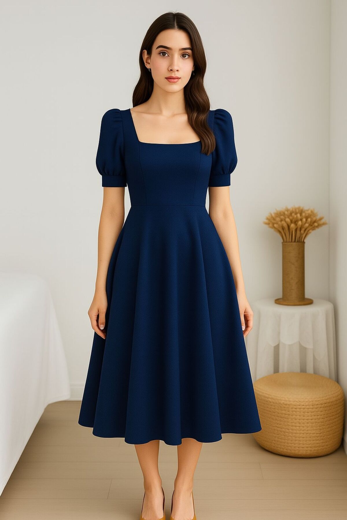 Styling Park Kısa Kol Kare Yaka Kloş Midi Boy Elbise Özellikleri