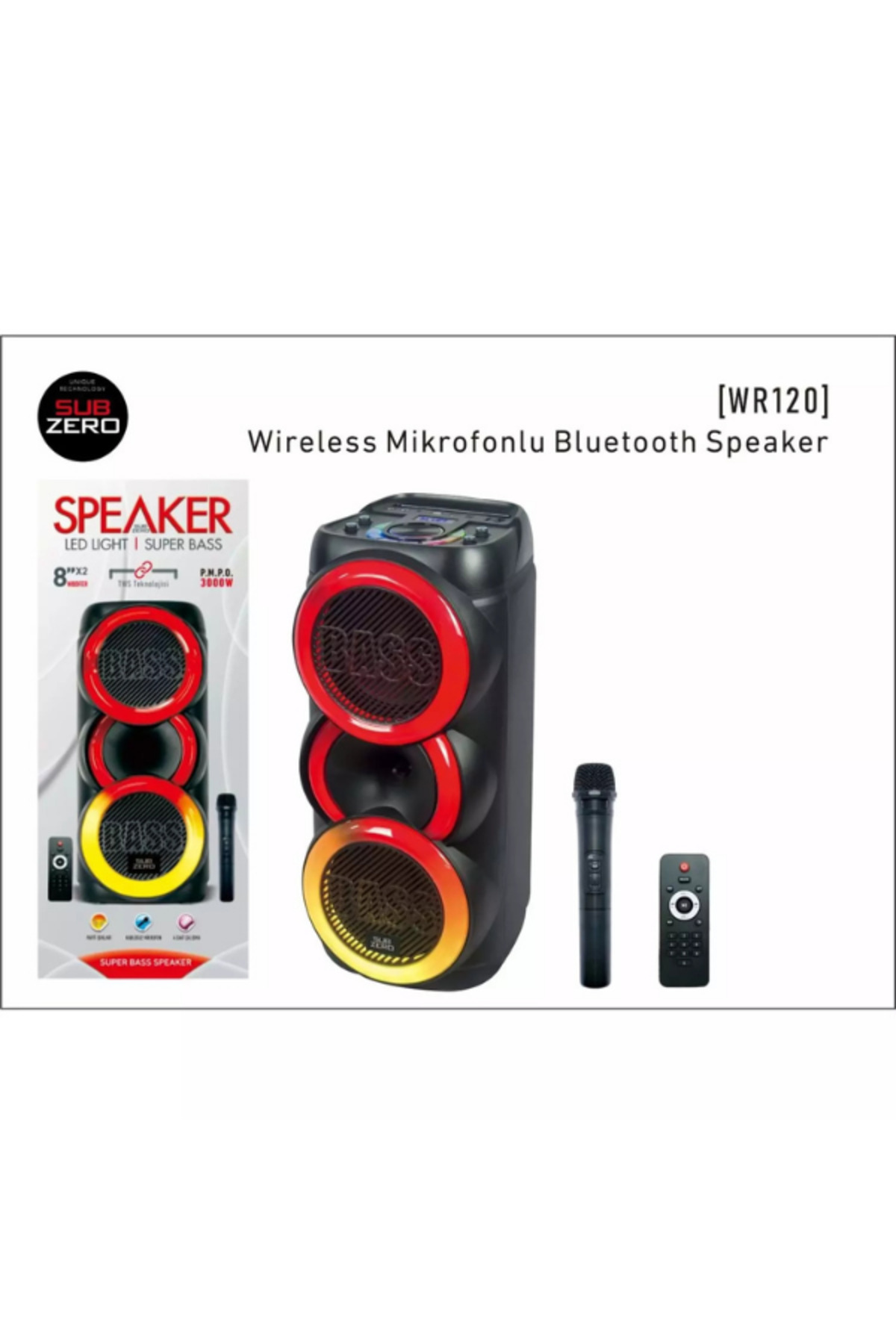 Subzero WR120 Profesyonel Kablosuz Müzik Kutusu | Tek Mikrofonlu & RGB Işık Efekti Özellikleri