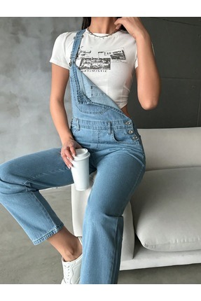 Shield Life Yan Apoletli Çift Kemer Detaylı Açık Mavi Bol Paça Balle Karyıkama Kadın Yazlık Pantolon