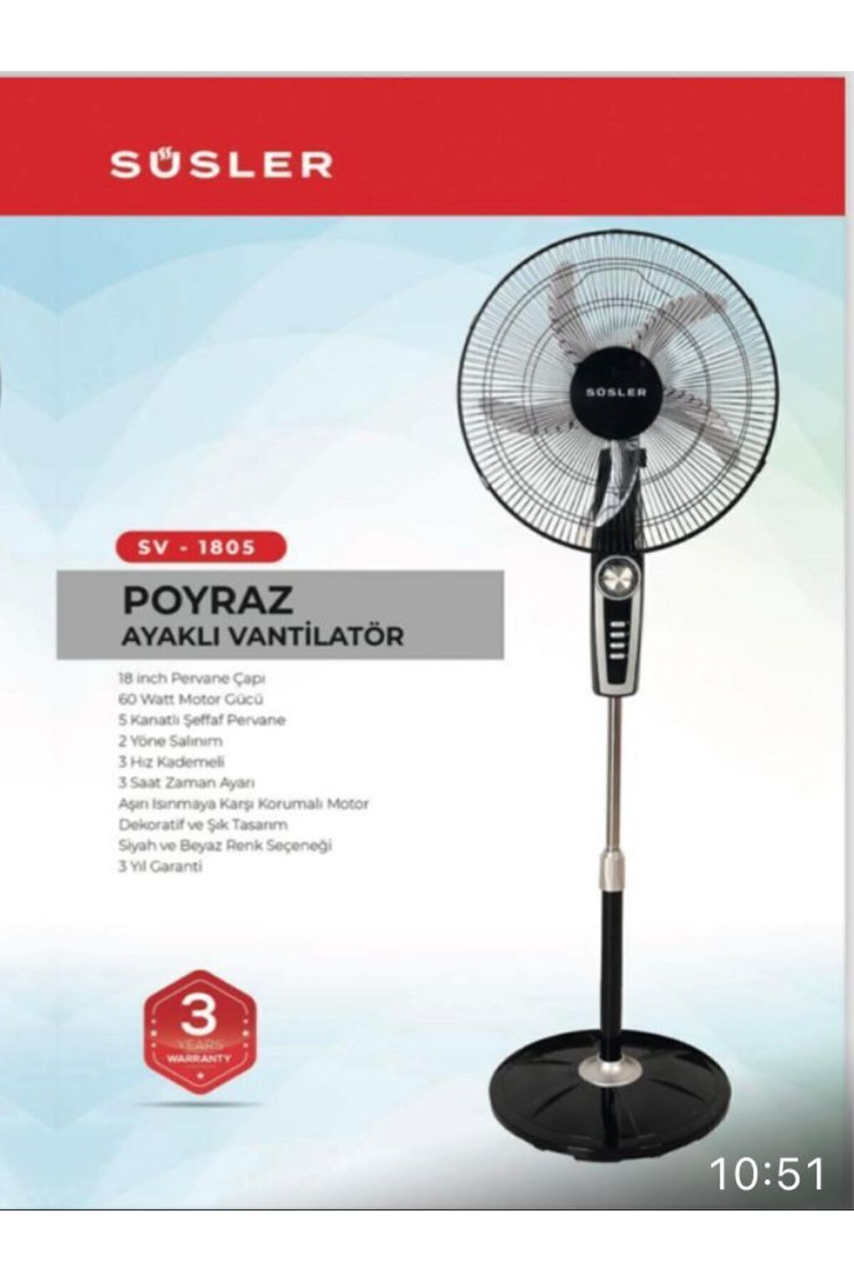 Süsler Sv - 1805 Poyraz Ayaklı Vantilatör - Siyah Özellikleri