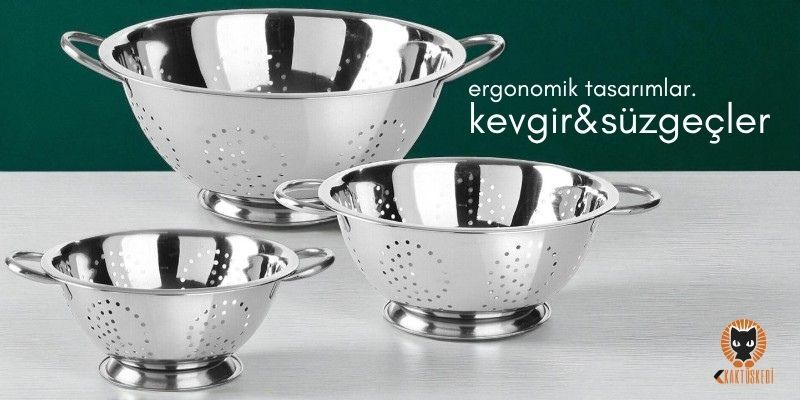 Gün içerisinde tükettiğiniz besin çeşitleri ve mutfağınızın büyüklüğüne uygun olarak tasarlanan kevgir seçenekleri arasından size uygun görünen ürünün özelliklerini detaylıca inceleyebilirsiniz. 40’lık, 50’lik, 70’lik, 100’lük süzgeç modelleri arasından tencere ve ocak setinize uygun olanı tercih edebilirsiniz. Teknolojinin gelişmesi ile birlikte kullanım alanları ve arıtma işleminin günlük hayatımızdaki yeri ile birlikte değişik tür ve ebatlarda deliklere sahip birçok kevgir üretilir. Mutfak işleri için özel olarak tasarlanan kevgir çeşitleri; üretim malzemesi, ebat ve fiyat gibi göstergelere göre farklı kategorilere ayrılır. Sade ve geleneksel kevgir modellerine ek olarak akordiyon süzgeç çeşitlerini de tercih edebilirsiniz. Pratik özelliklerle donatılan ayarlanabilir süzgeç çeşitleri bilhassa sürgülü lavaboya sahip müşteriler için harika bir üründür. Genellikle plastikten yapılan ayarlanabilir seperatörler mutfak işlerini son derece kolaylaştırır. Mutfak lavabonuzun genişliğine göre ayarlanabilen bu ürün çeşitleri, sebze yemeklerini doğru ve verimli bir şekilde hazırlamanıza yardımcı olur. Kevgir çeşitlerinin tasarımında bulunan malzemelerin bir kısmı plastik ve silikon türü maddelerden oluşur. Bunun yanında metal, çelik ve demir gibi maddelerden üretilen ayrıştırıcı mutfak eşyaları da mevcuttur. Endüstriyel süzgeç modelleri aşçılık alanında profesyonel olan kişiler tarafından sıklıkla tercih edilir. Sert metallerden üretilen kevgir ürünleri yüksek ısıya karşı dayanıklı olarak üretilir. Bununla birlikte çelik ve demirden üretilen kevgir ürünlerinin kullanım ömrü oldukça uzundur. Paslanmayan çelikten imal edilen ayrıştırıcılar, ürün yüzeyinin kaynar su ve benzeri maddelerden dolayı korozyona uğramasını kayda değer ölçüde geciktirir. Çelikten üretilen ayrıştırıcı mutfak ürünleri yiyeceklerinize zararlı kimyasal maddelerin yerleşmesini büyük ölçüde engeller. Bu sayede pişirdiğiniz yemeklerin sağlıklı bir şekilde tüketilmesini sağlayabilirsiniz. Uzun, ince, büyük süzgeç çeşitleri arasından elinize yatkın olanı tercih edebilirsiniz. Lezzetli yemekler hazırlamanızı kolaylaştıran bu eşyalar arasından uzun sapı olan veya geniş yüzeyi olanları satın alabilirsiniz. Çay demleme için sert metalden üretilen ayrıştırıcı çeşitlerini tercih edebilirsiniz. Demlikler için özel olarak tasarlanan delikli filtre ürünleri sayesinde çay yapraklarının bardağınıza düşmesini önleyebilirsiniz. Çay yaprağının yutulmasından hoşlanmayan müşteriler için bu delikli filtreler oldukça kullanışlıdır. Uzun yıllar kullanılabilen plastik ve silikondan üretilen kevgir çeşitleri de kullanımınıza sunulur. Fiyat bakımından oldukça hesaplı olan bu kevgir çeşitlerini mutfak işleriniz için tercih edebilirsiniz. Öte yandan, bilhassa düşük sıcaklıklardaki suların filtrelenmesinde plastik kevgirler sıklıkla kullanılır. Uygun fiyat aralıklarının yanı sıra plastik ve silikon gibi malzemelerden üretilen filtreleyici kaplar da metalden mamul mutfak eşyalarına benzer şekilde size uzun süreli kullanım imkanı sağlar. Silikon malzemesinden üretilen kevgir kapları soğuk suların filtrelenmesini fazlasıyla kolaylaştırır. Bununla birlikte silikondan üretilen kevgir kapları boyut olarak küçüktür. 15x15 süzgeç modelleri genişlikleri sayesinde mutfak işleri için harikadır. Bu sayede silikon filtreleme kapları mutfağınızda az yer kaplar. Mutfak alanı küçük olan kişiler için silikon kevgir kapları oldukça kullanışlıdır.