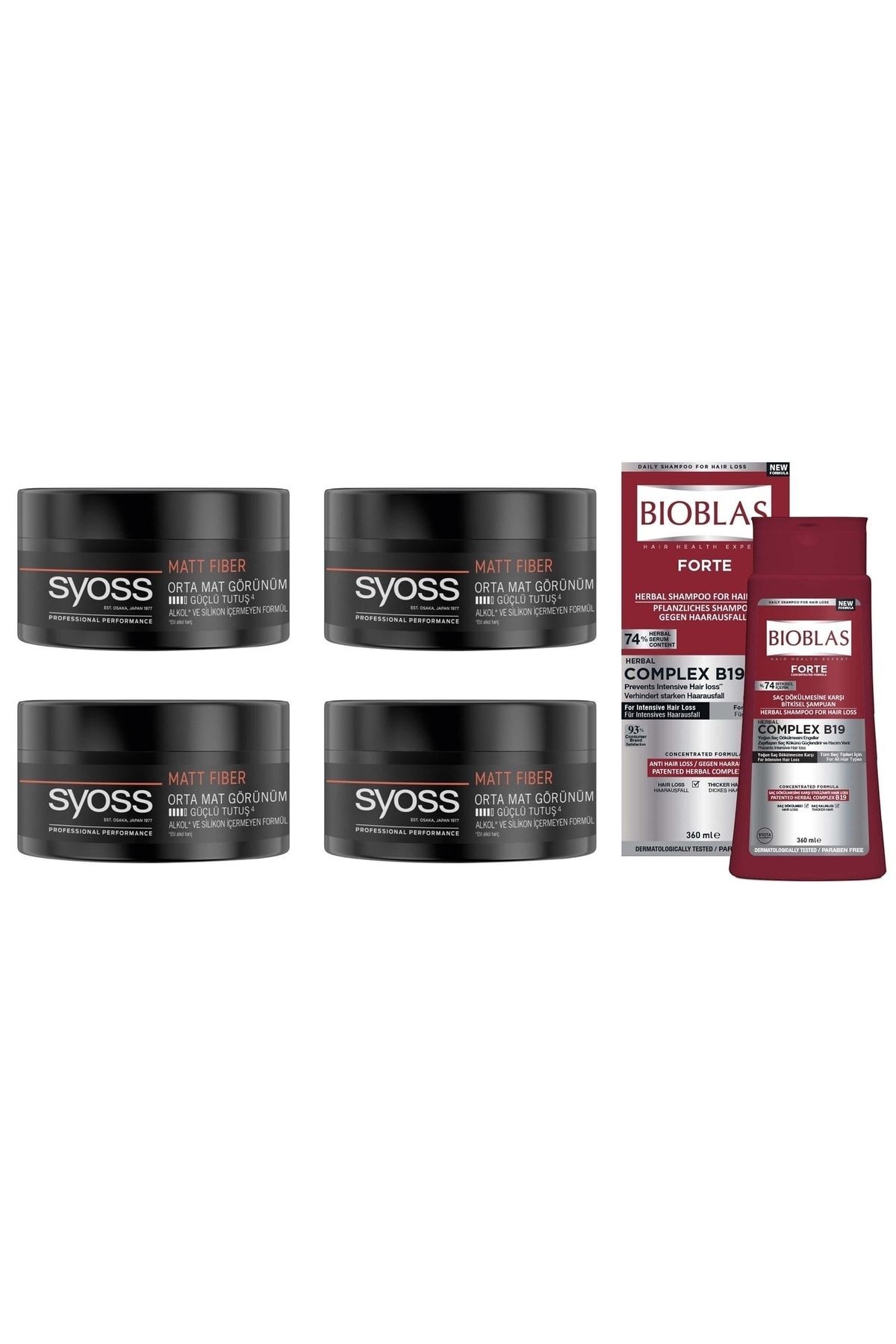 Syoss Matt Fiber High Control Mat Wax 100 Ml 4 Adet + Bioblas Fort Dökülme Karşıtı 360ml Şampuan